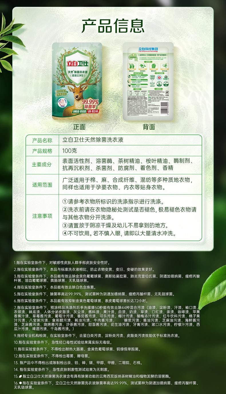 Lote de detergente para ropa esterilizante Libai Weishi, 100 g, bolsa pequeña, desodorante antibacteriano, detergente para ropa para el hogar, caja completa.
