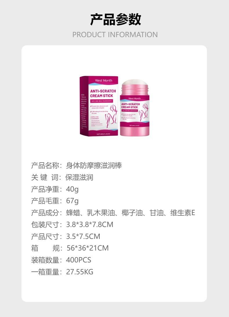 Barra hidratante antifricción corporal WEST MONTH, hidratante, refrescante, no grasa, para el cuidado de la piel.