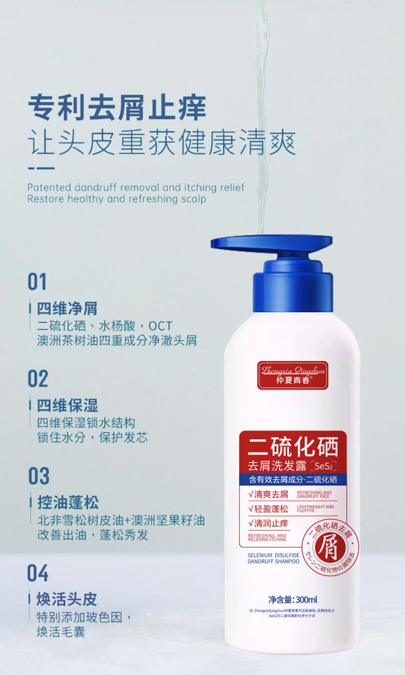 Producto estrella: nuevo champú anticaspa con disulfuro de selenio, control de aceite, champú suave y antipicazón, fragancia anticaspa potente.