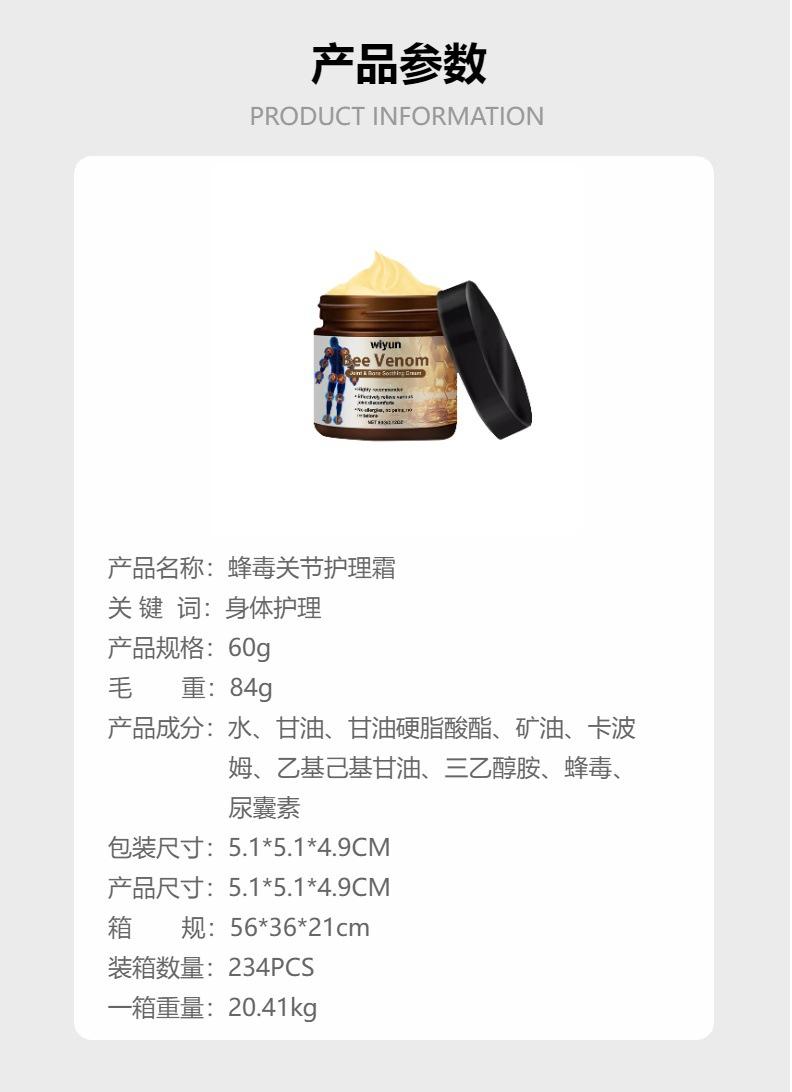 Crema para el Cuidado Articular con Veneno de Abeja WIYUN para Uso Externo Aplicar para Aliviar el Malestar Masaje Corporal Crema Nutritiva de Cuidado Suave