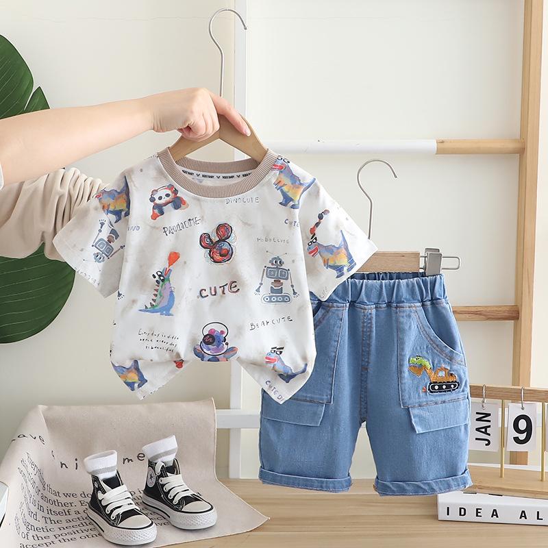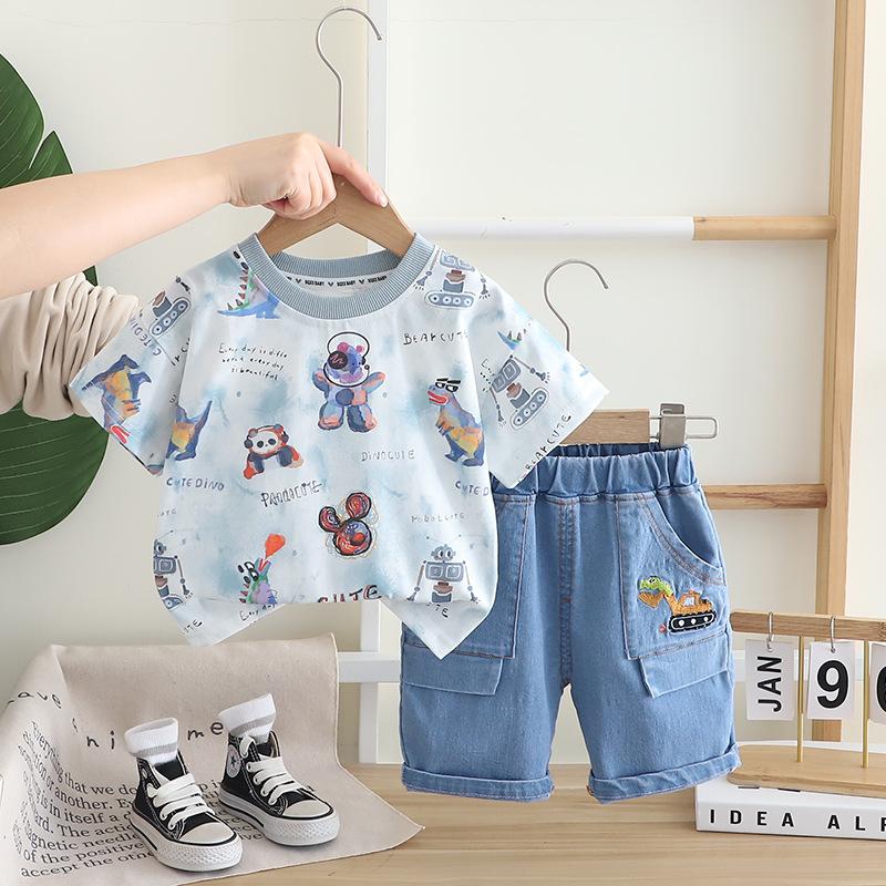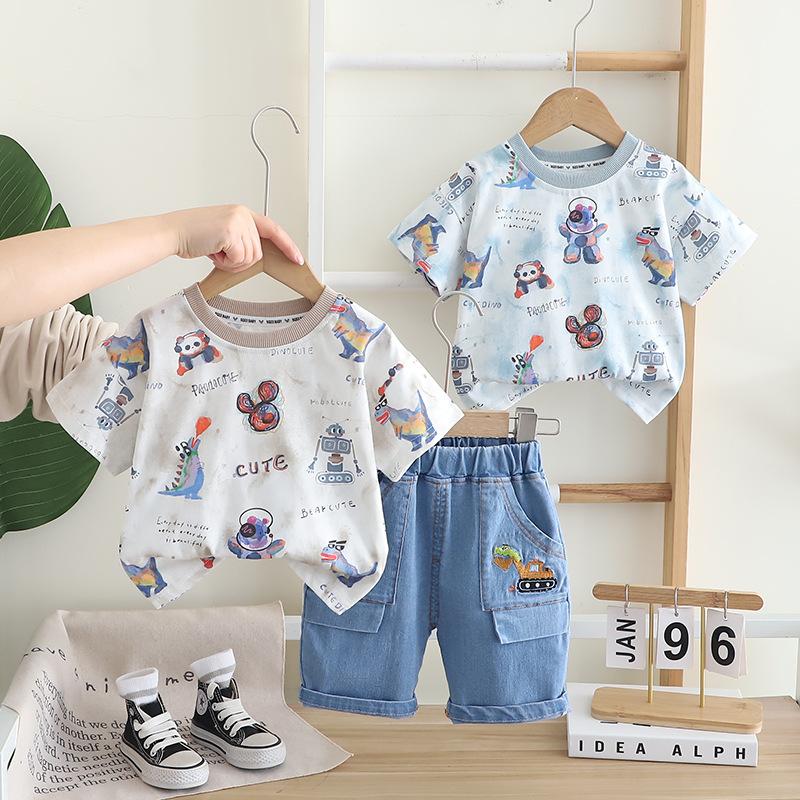 Traje de manga corta para niño 2025 Verano Nuevo Bebé Dibujos Animados Conjunto de dos piezas 1-5 Años Estilo Occidental Traje de niño