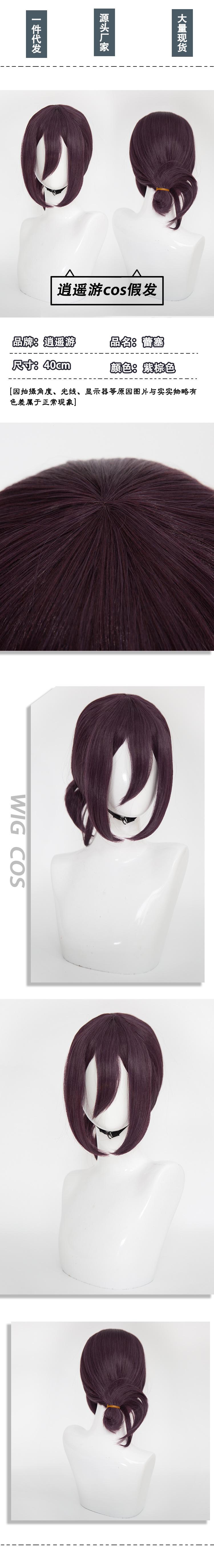 [Viaje Libre] Peluca Cosplay de Chainsaw Man Reze con Cola de Caballo Integrada, Cabello Sintético Morado Oscuro, Mismo Estilo que la Versión Anime