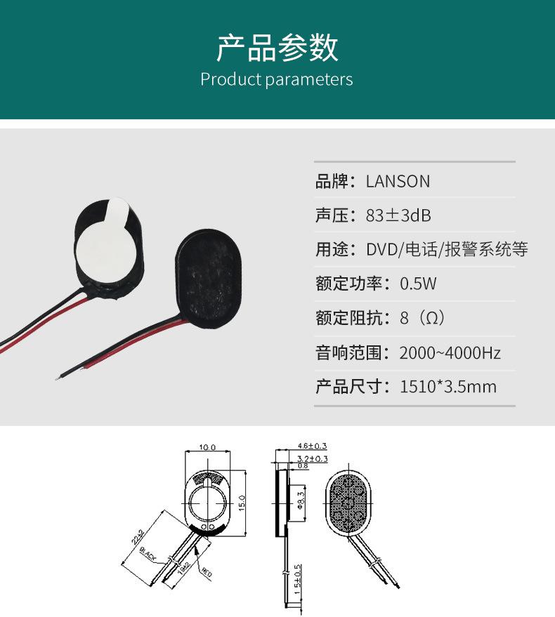 Fabricante de bocina magnética 8 ohmios 0.5W Bocina ovalada 15mm reconocimiento facial sistema de alarma altavoz