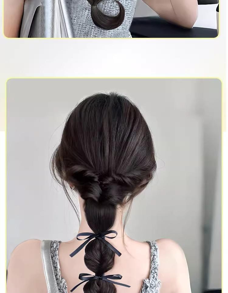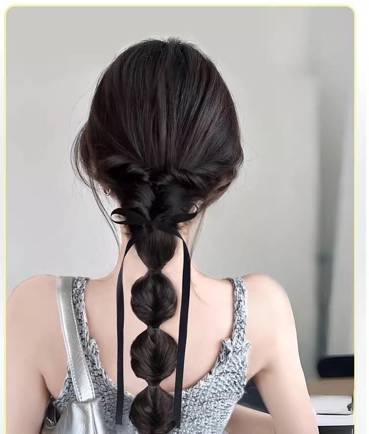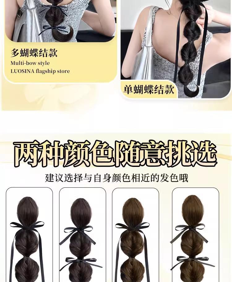 Grabbing ribbon bow bubble braid [black brown], Grabbing ribbon bow bubble braid [light brown], Grabbing ribbo...
