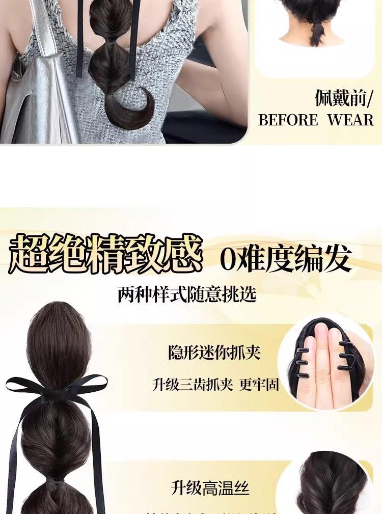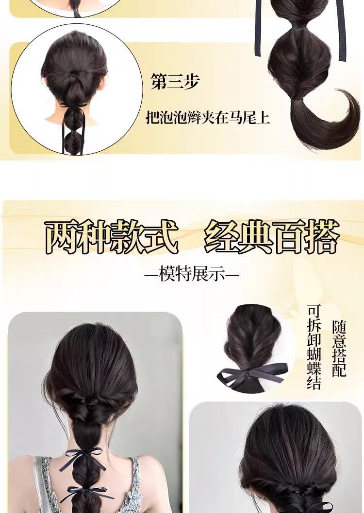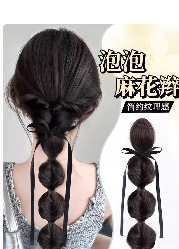 Nueva peluca cola de caballo trenza burbuja esponjosa natural lazo de cinta trenza doble cola de caballo moda suave