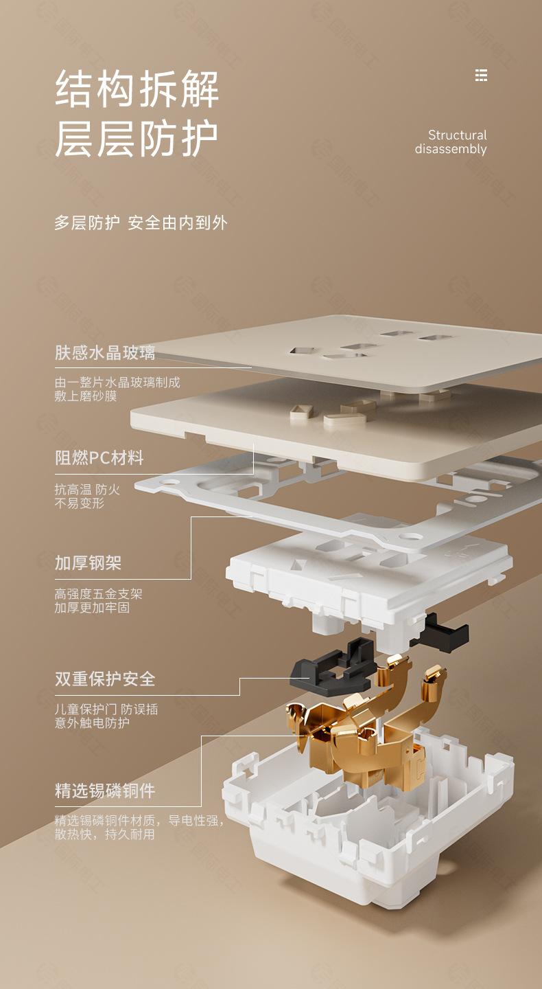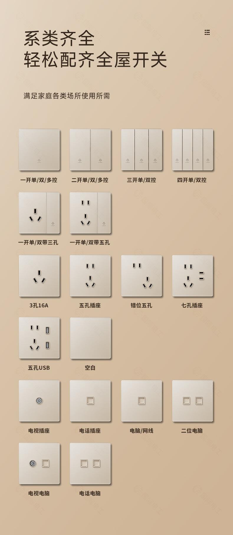 Electricista Internacional Tipo 86 Oculto Panel Acrílico Color Cacao Cinco Orificios Enchufe Interruptor Simple/Doble con Control Dual
