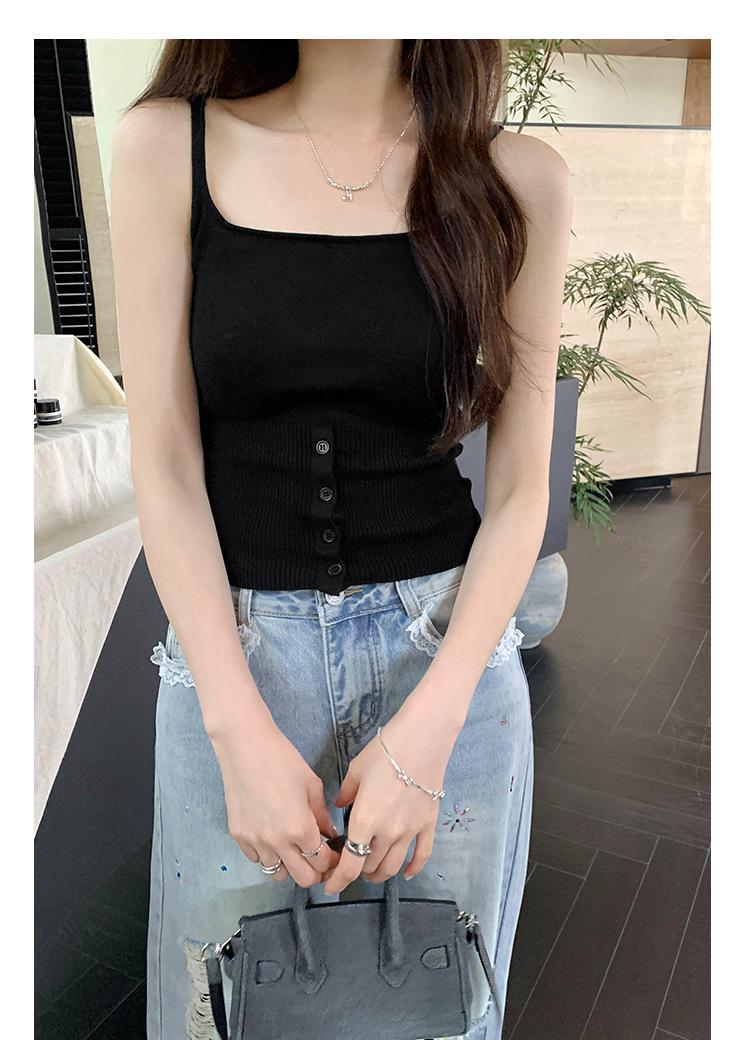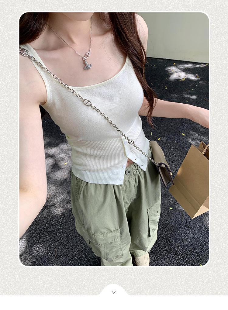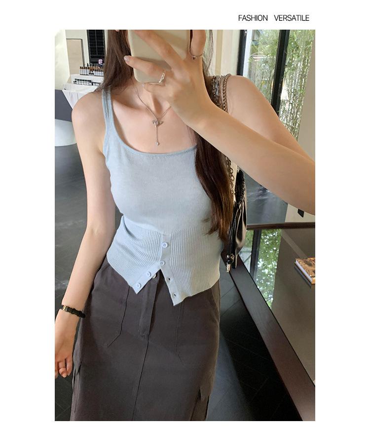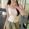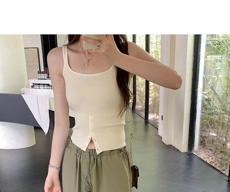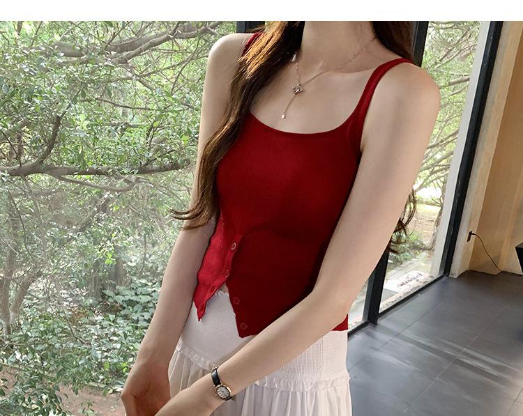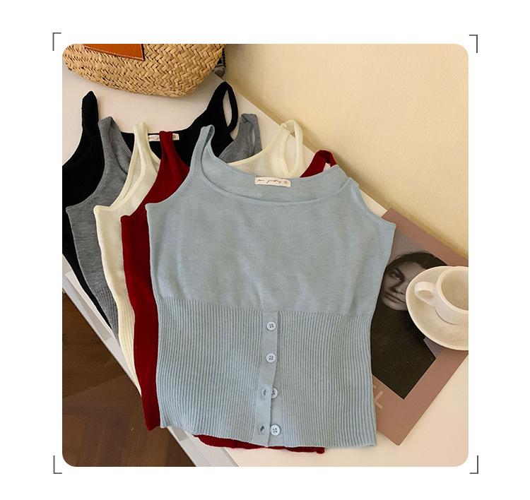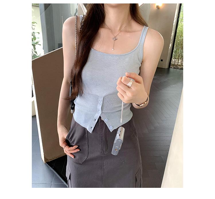 Camisola de punto para mujer estilo coreano 2025 verano nueva prenda exterior botón en la cintura diseño de abertura top corto