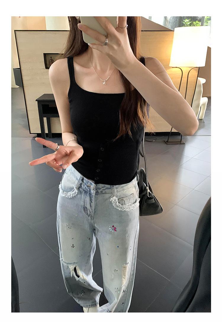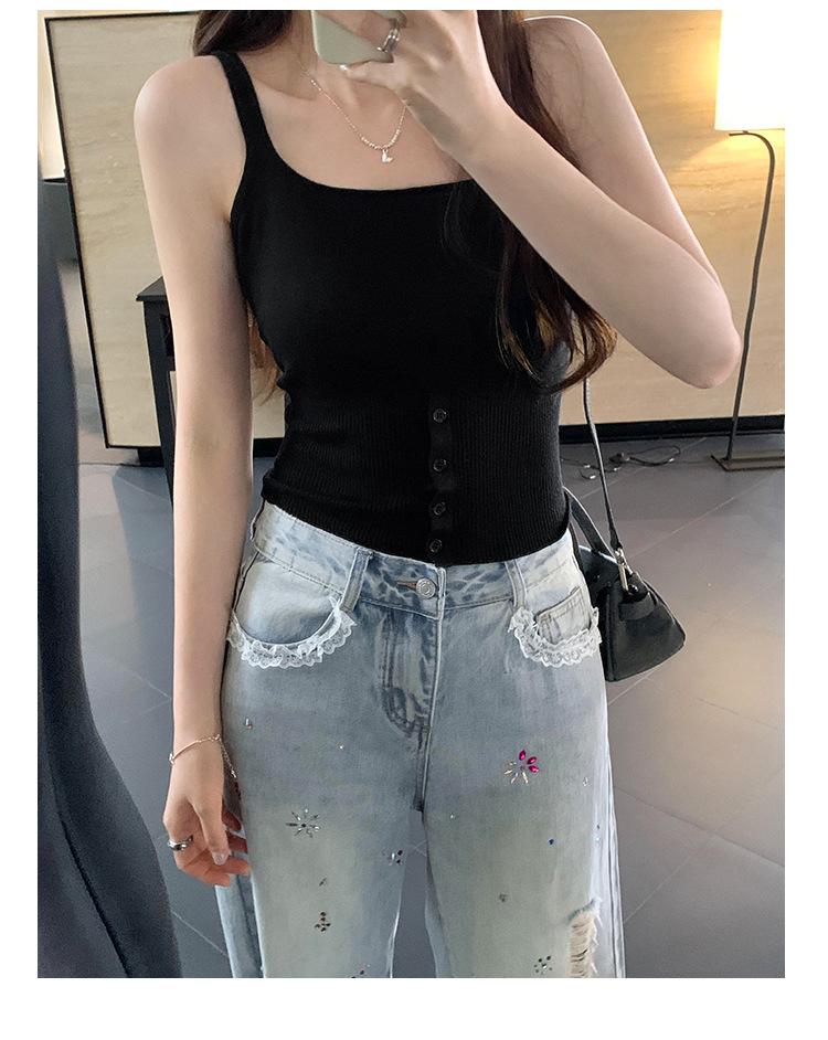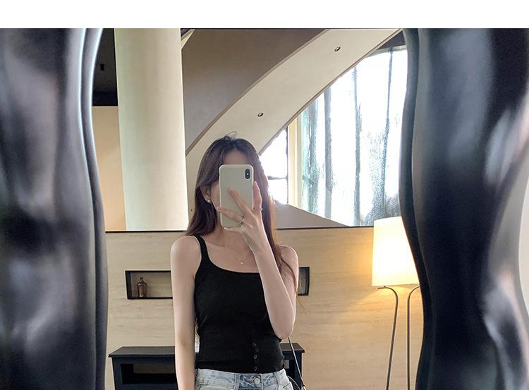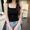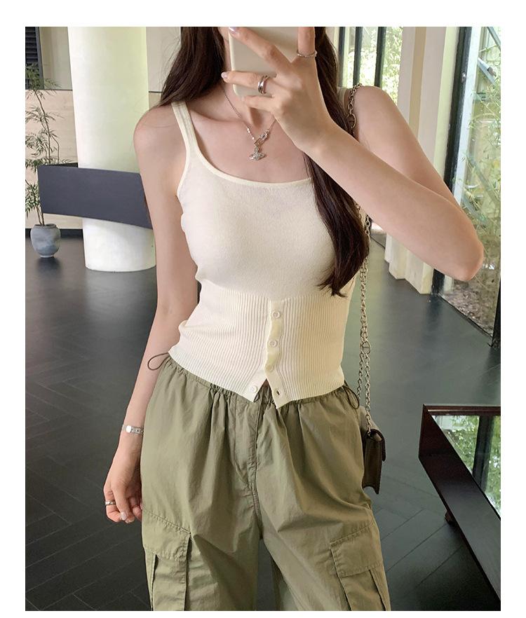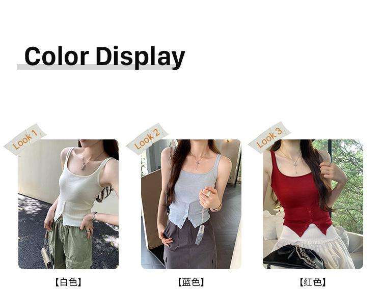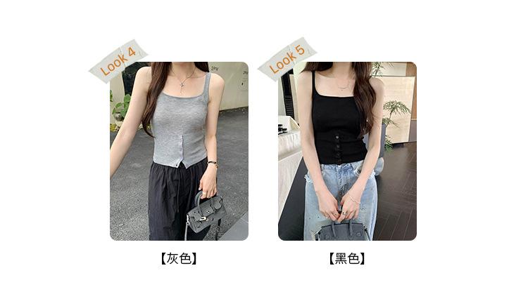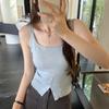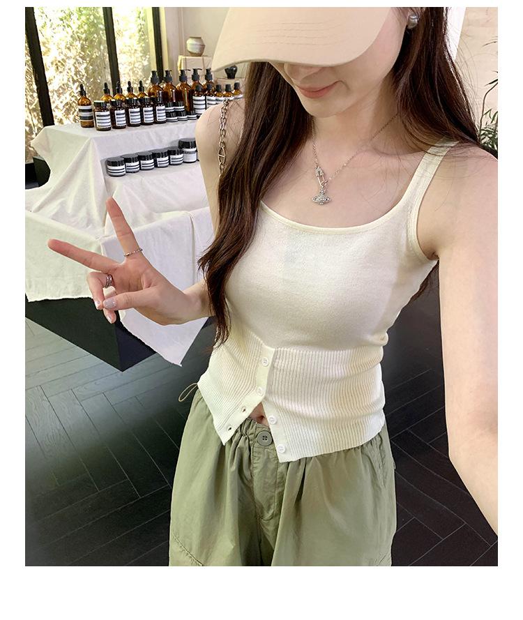 Camisola de punto para mujer estilo coreano 2025 verano nueva prenda exterior botón en la cintura diseño de abertura top corto