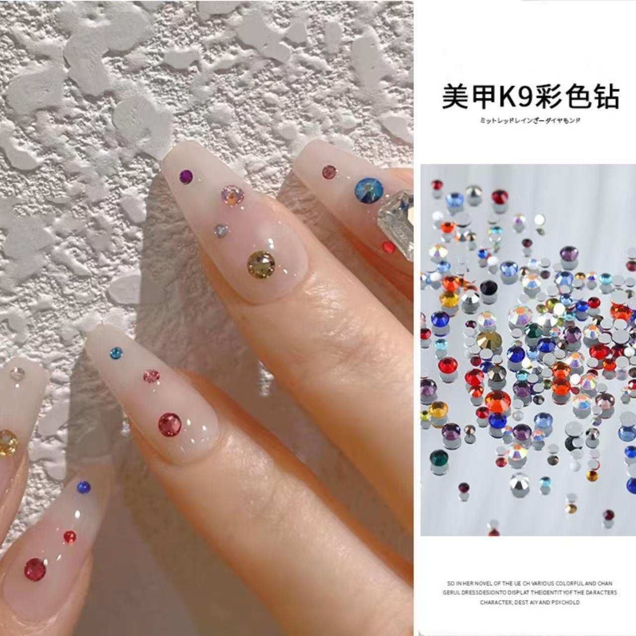 Diamante plano de color redondo, bricolaje, hecho a mano, para uñas, joyería para uñas, diamantes de imitación, diamantes de colores mixtos, venta al por mayor