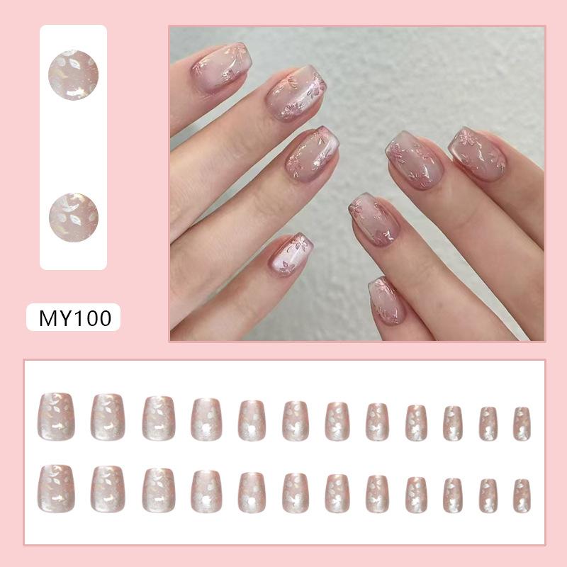 Ojo de Gato Línea Simple Flor Dulce Chica Linda Combinable Estilo Europeo y Americano ins Parche para Arte de Uñas Removible 24 Piezas