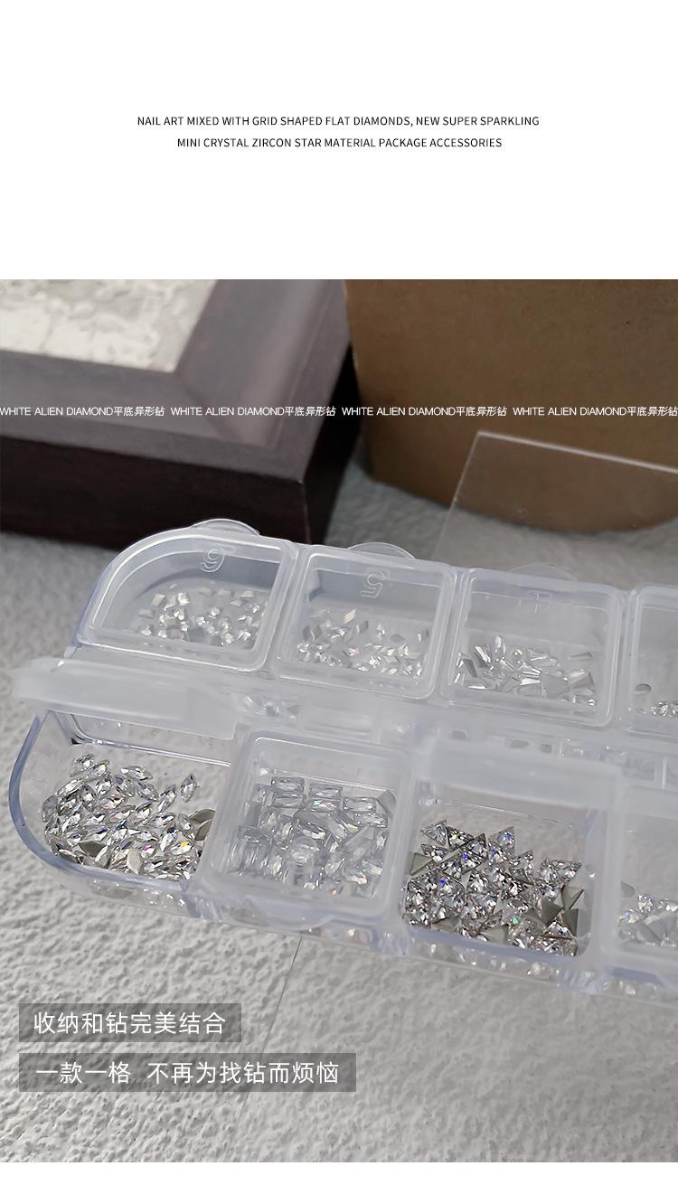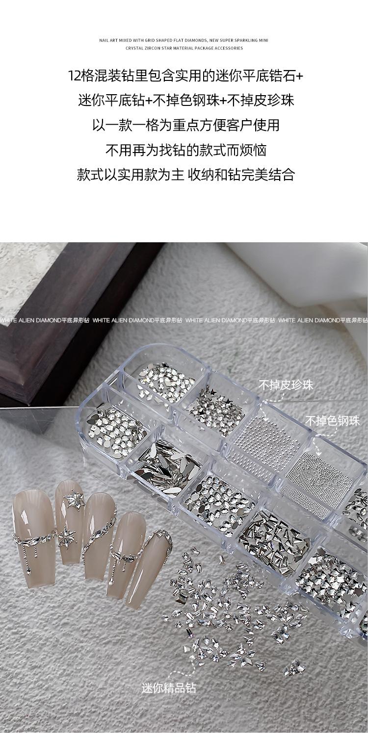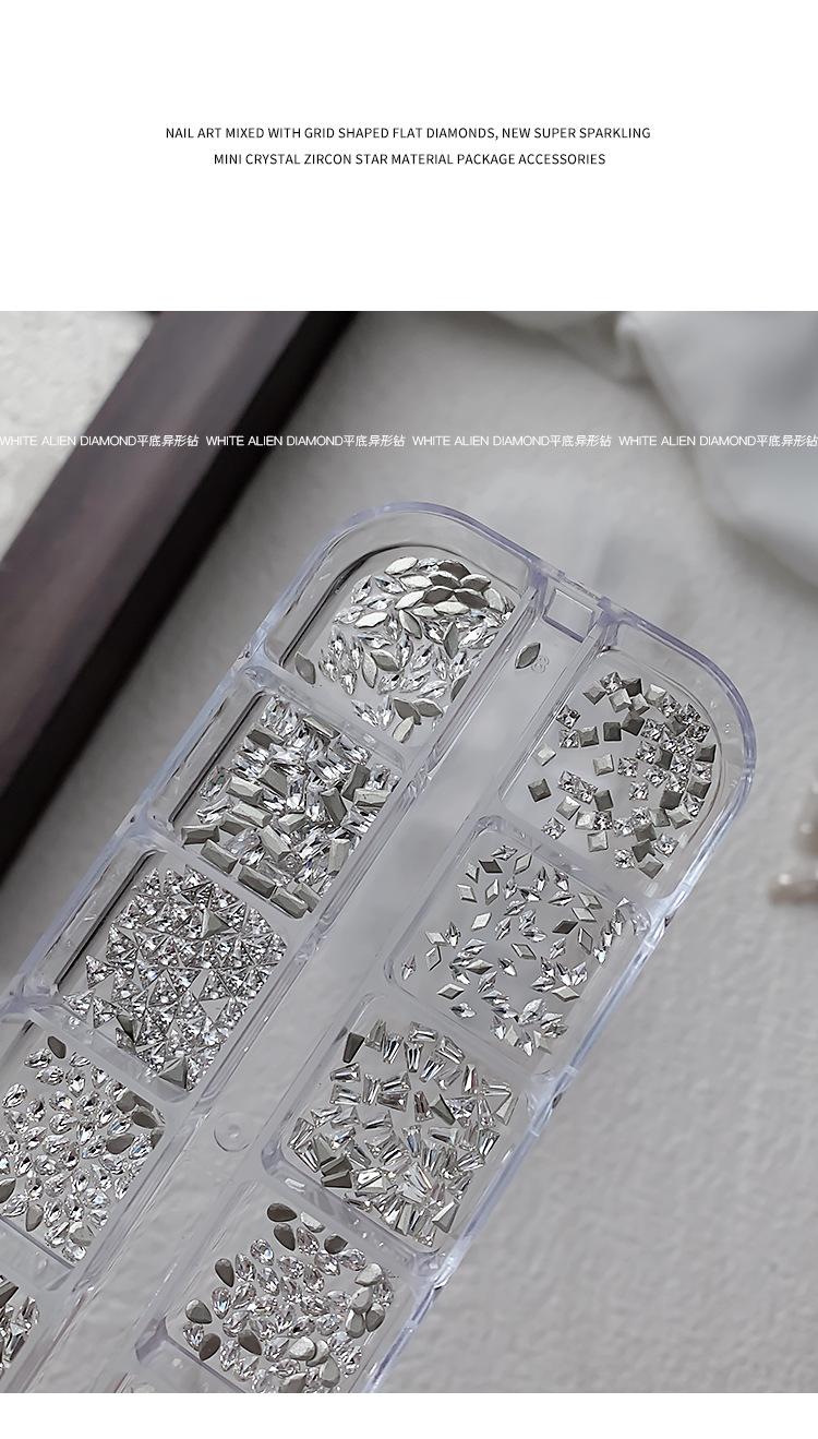 Decoración mixta para uñas, 12 rejillas, base plana, forma especial, diamante, perla, mini circonita, destello, perforación de hielo, ojo de caballo, accesorios para uñas