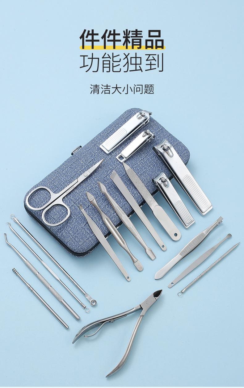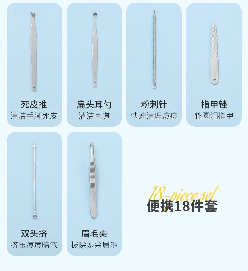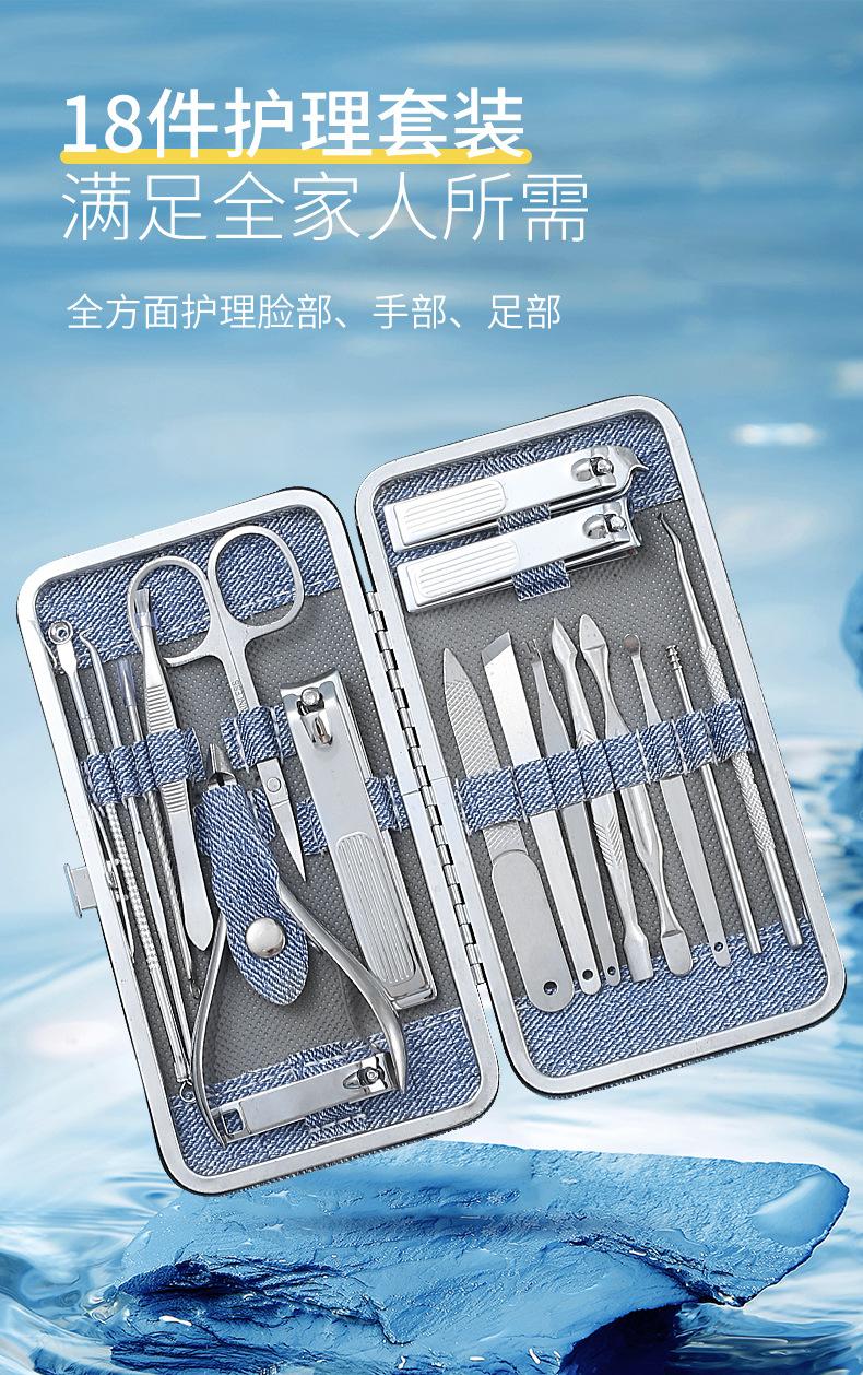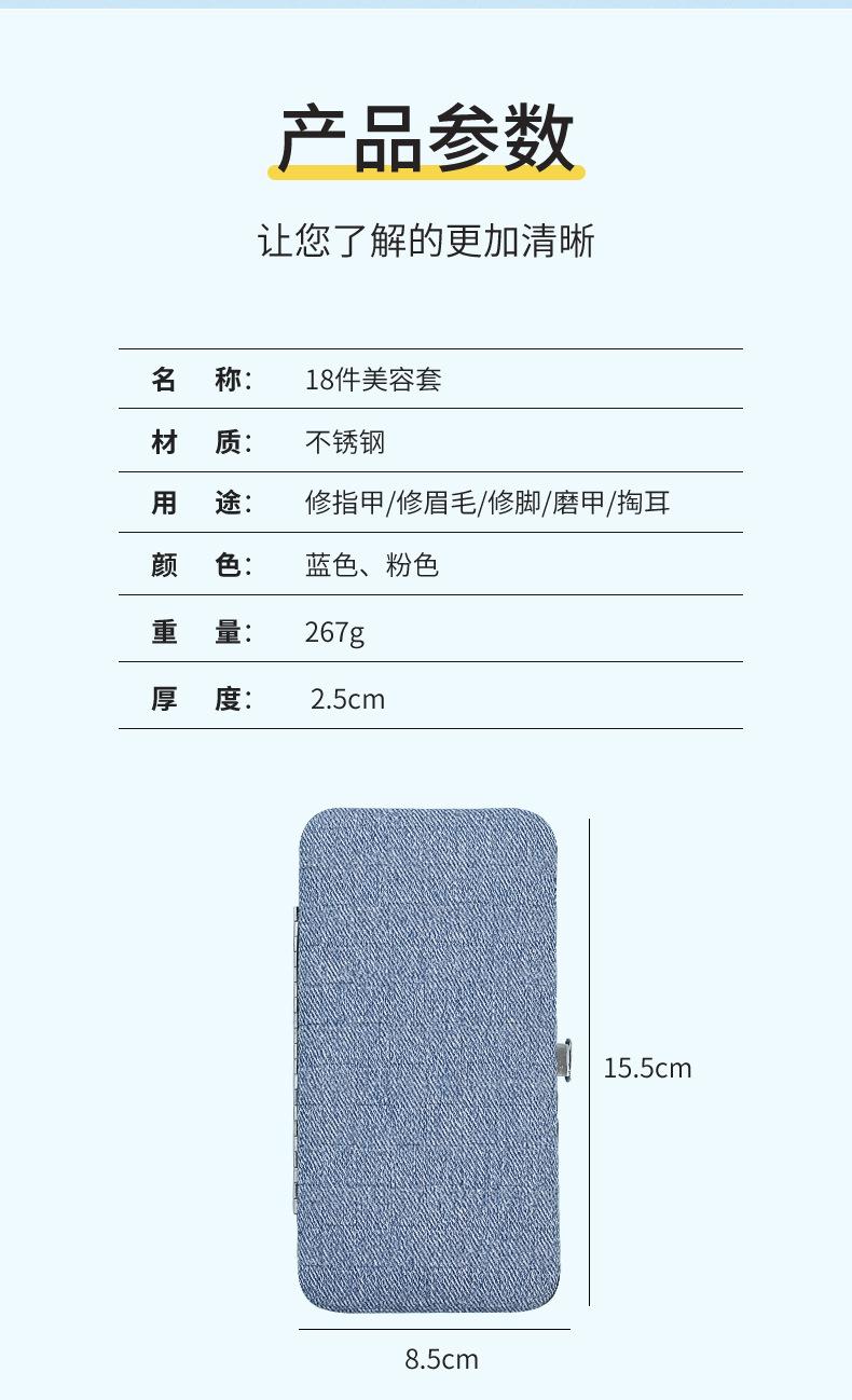 Juego de cortaúñas 18 piezas Azul mezclilla juego de belleza para uñas juego de herramientas para uñas juego completo cortaúñas