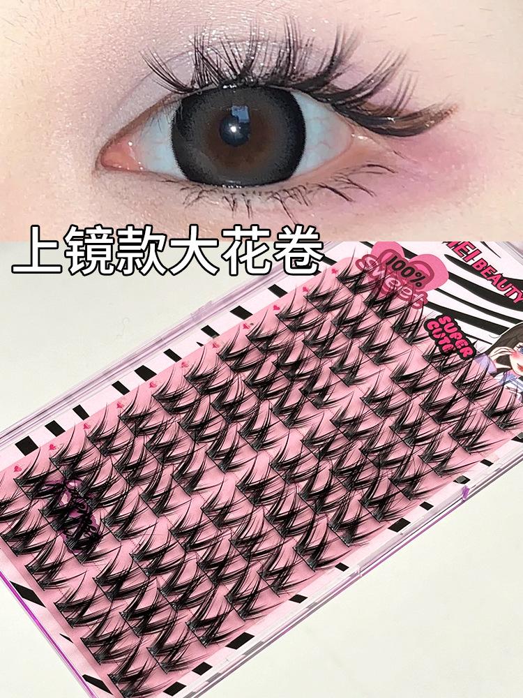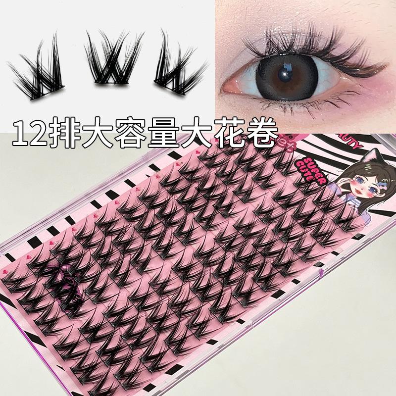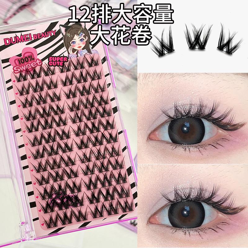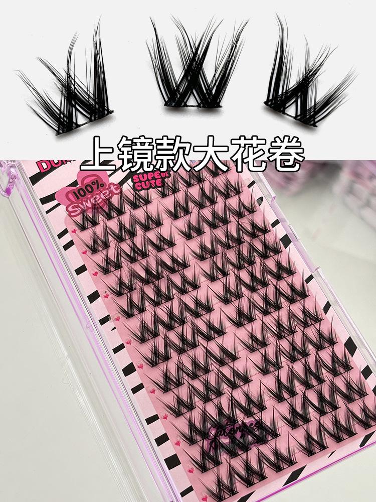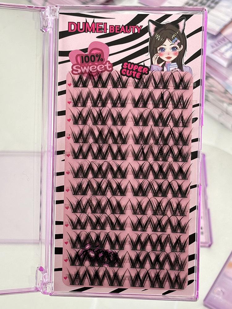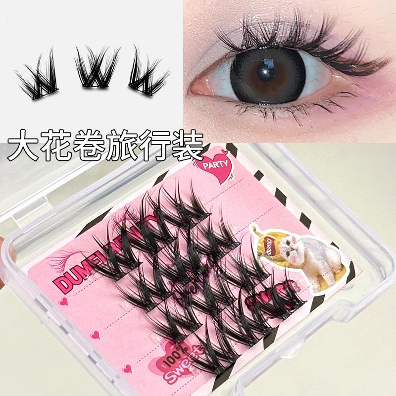 Pestañas postizas con diseño de flores grandes en forma de W, de un solo grupo, para mujer, con diseño de dibujos animados, en el espejo, estilo trilogía perezosa, rizadas y naturales.
