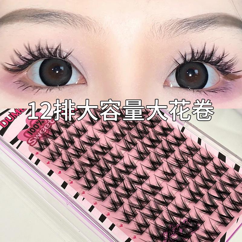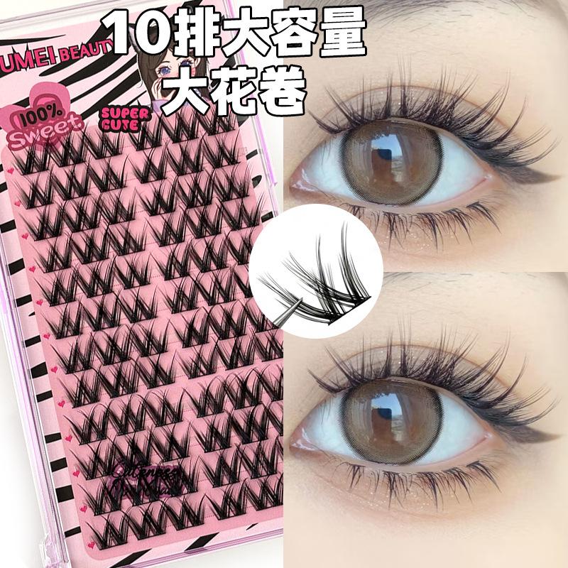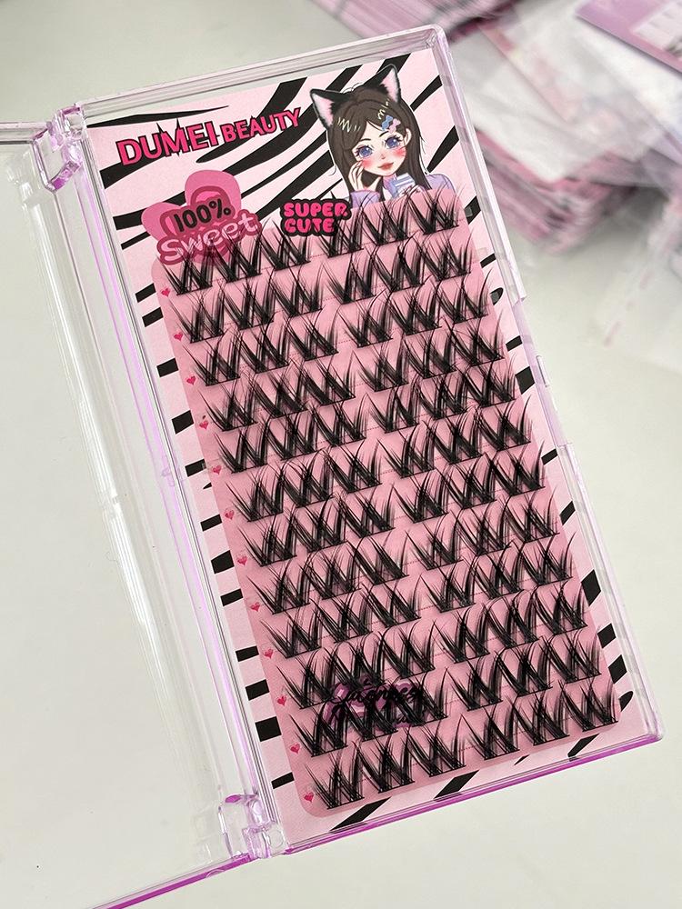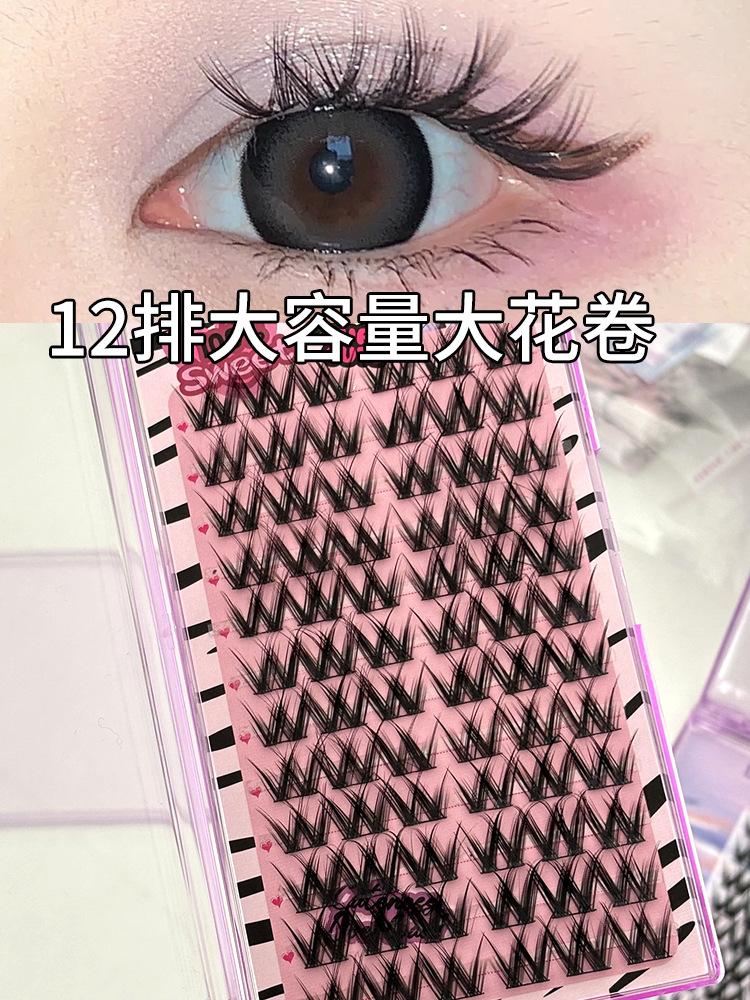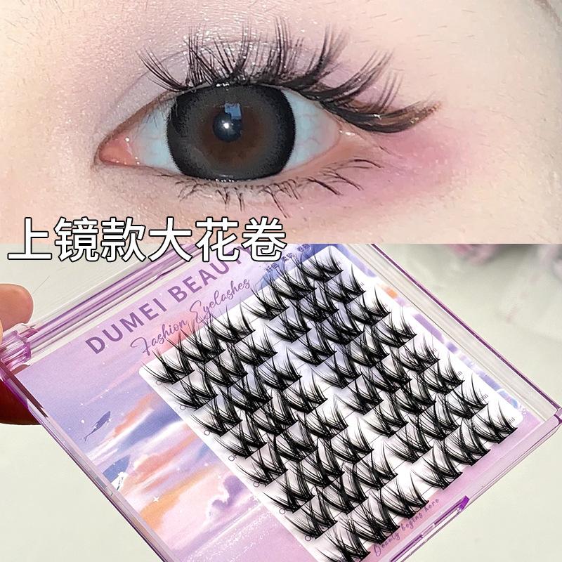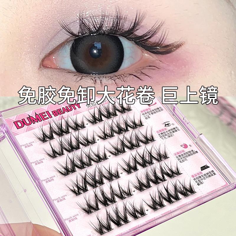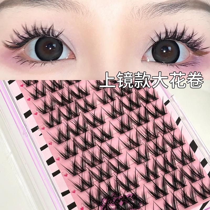 Pestañas postizas con diseño de flores grandes en forma de W, de un solo grupo, para mujer, con diseño de dibujos animados, en el espejo, estilo trilogía perezosa, rizadas y naturales.