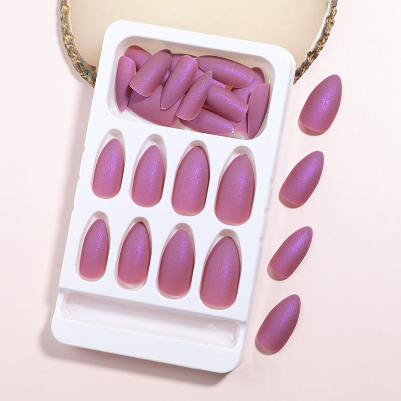 Mje-purple colorful frosted small pointed nails 24 pieces of nails + glue