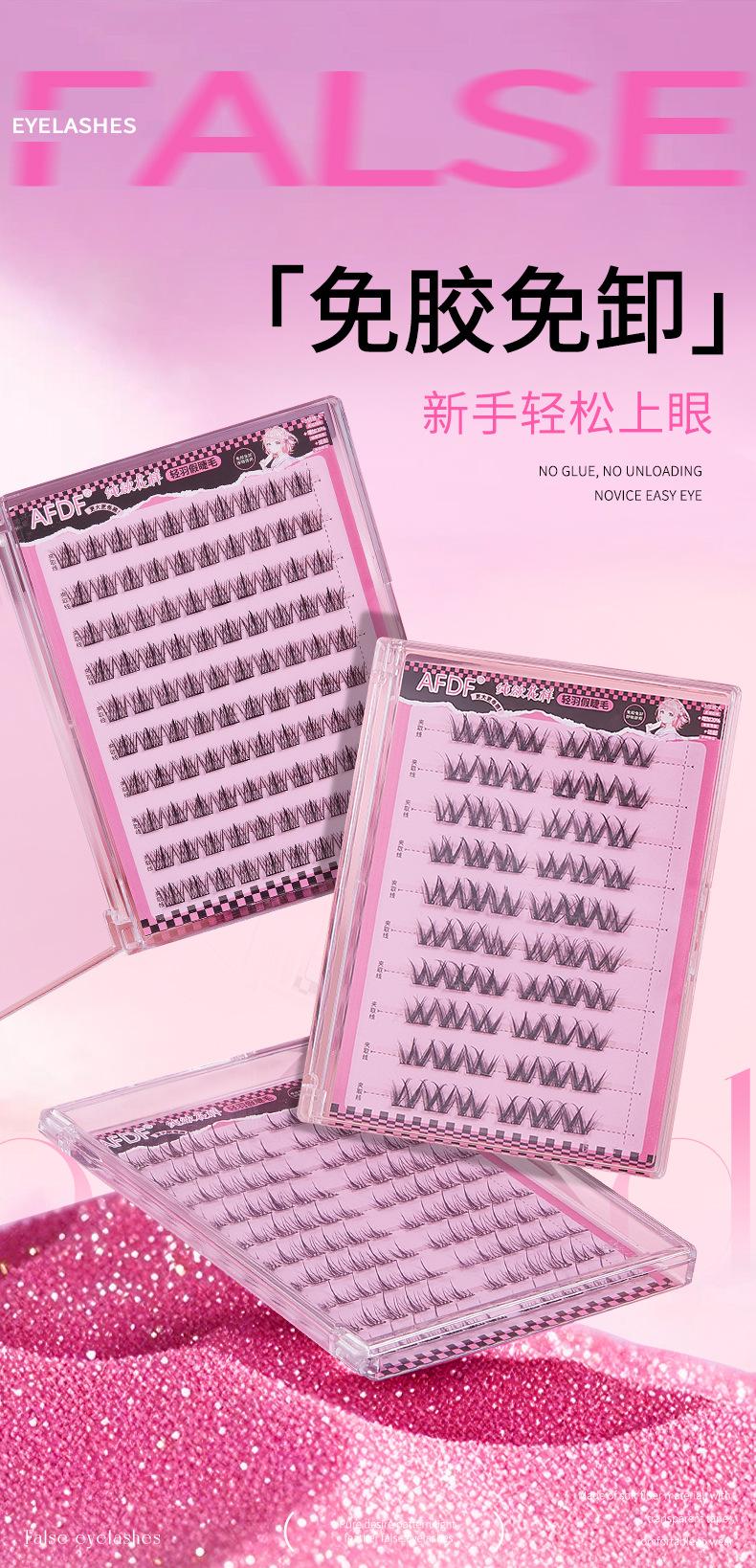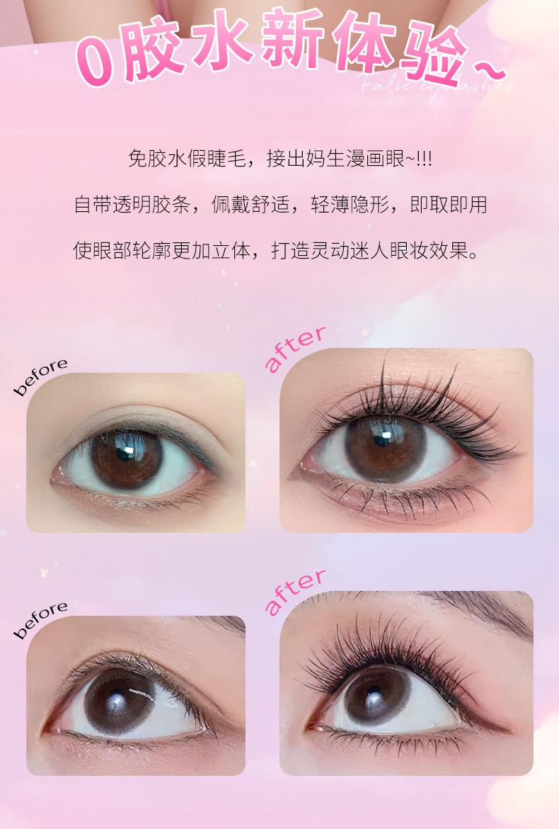 Pestañas postizas Pure desire de pluma ligera sin pegamento 10 filas de gran capacidad pequeño demonio autoadhesivas pestañas de dibujos animados pestañas postizas para persona perezosa