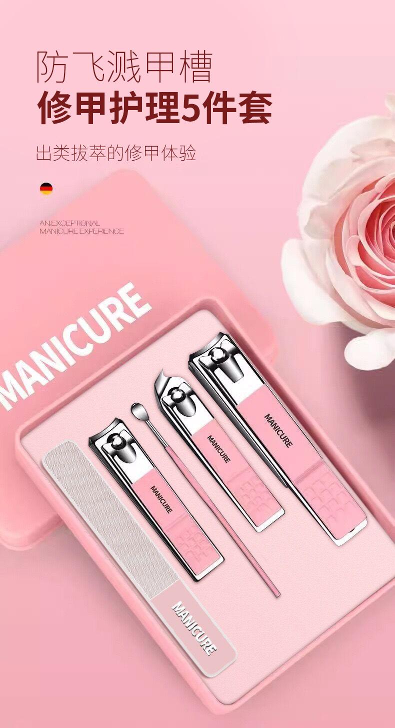 Juego completo de cortaúñas de 5 piezas, cortaúñas alemán, apto para niñas, cortaúñas para pedicura, herramientas para uñas oblicuas.
