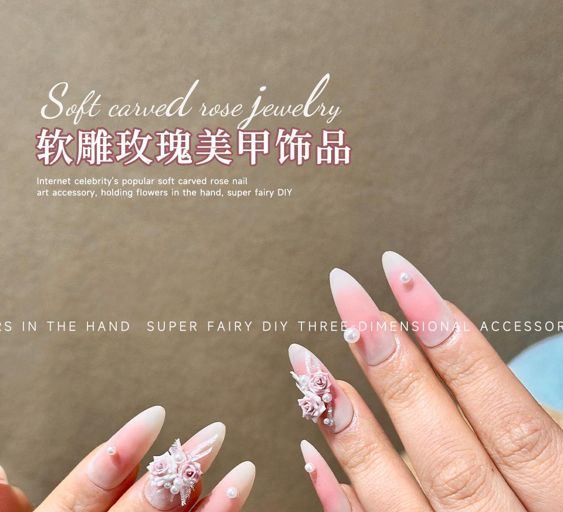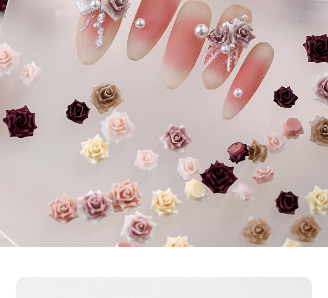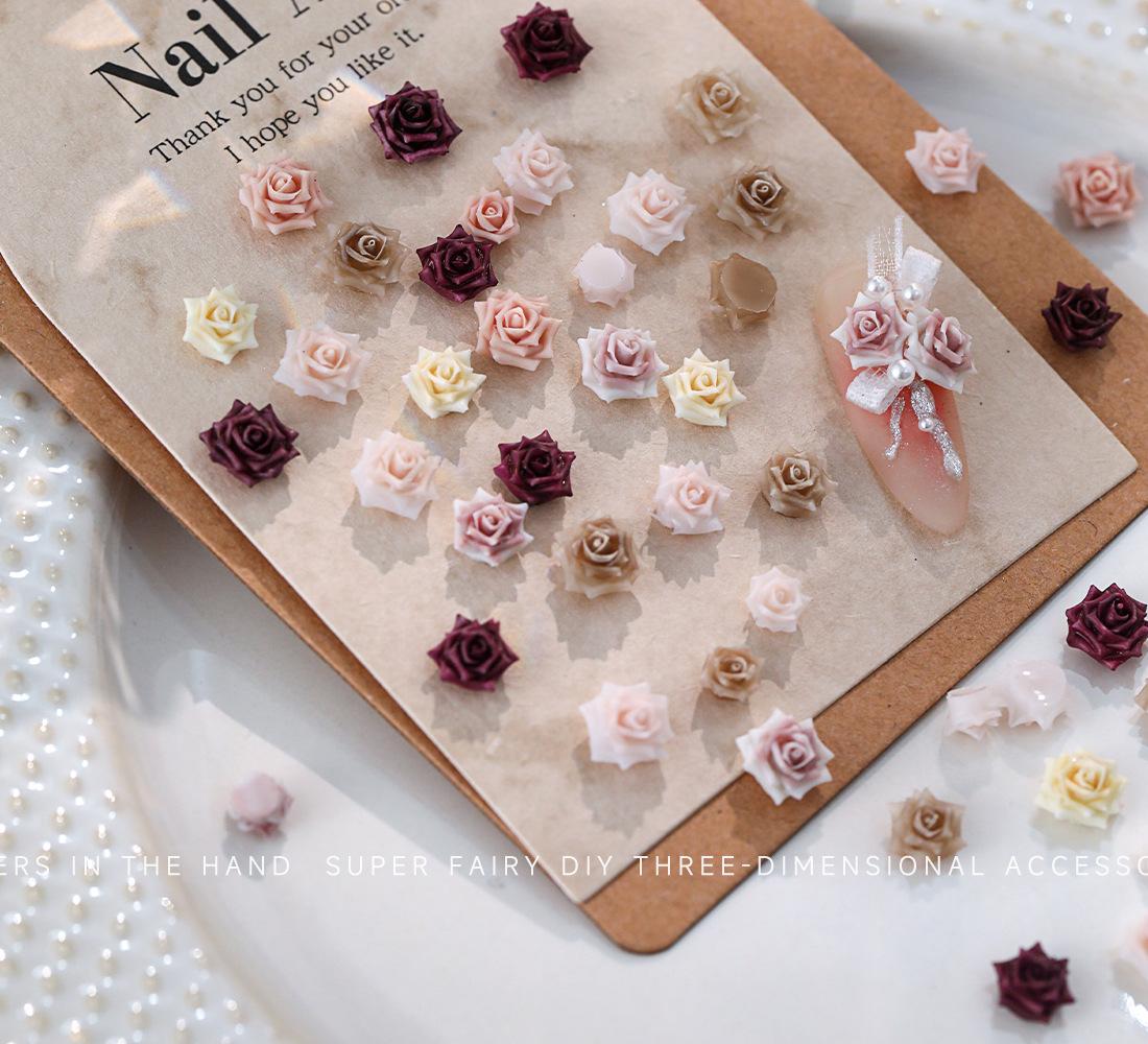Nueva Joyería para Arte de Uñas de Rosa Suavemente Tallada, Flores Manchadas Mixtas Exquisitas, Dulces Accesorios de Resina Tallada para Uñas al Por Mayor