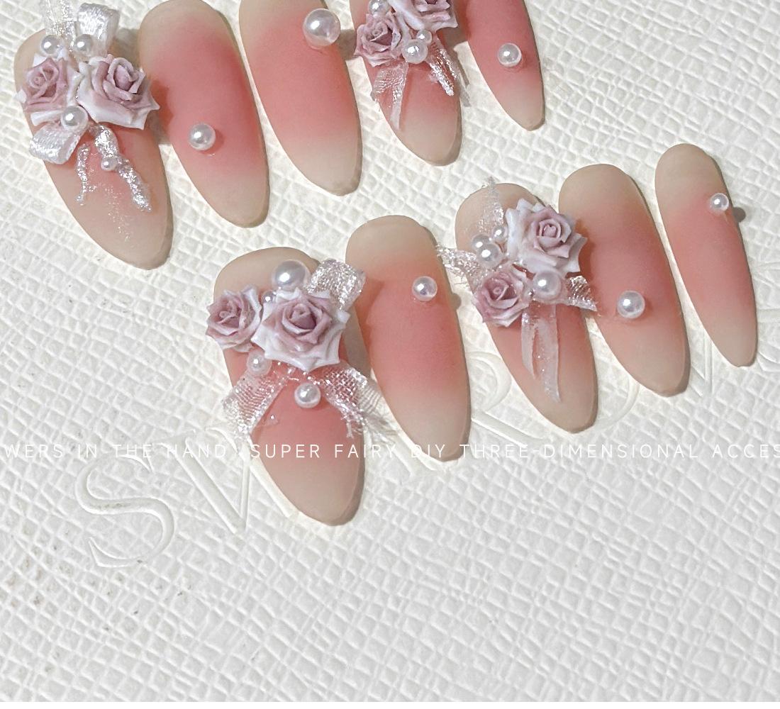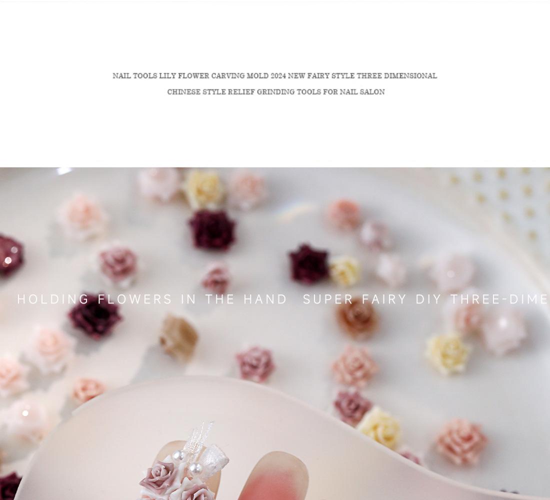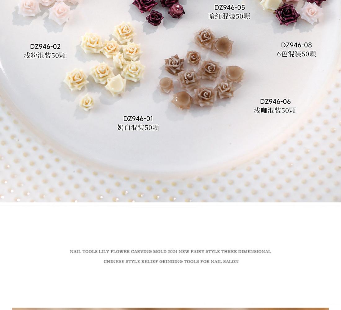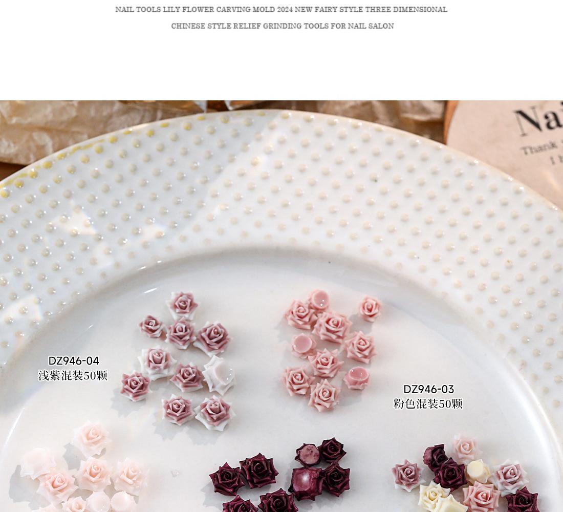 Nueva Joyería para Arte de Uñas de Rosa Suavemente Tallada, Flores Manchadas Mixtas Exquisitas, Dulces Accesorios de Resina Tallada para Uñas al Por Mayor