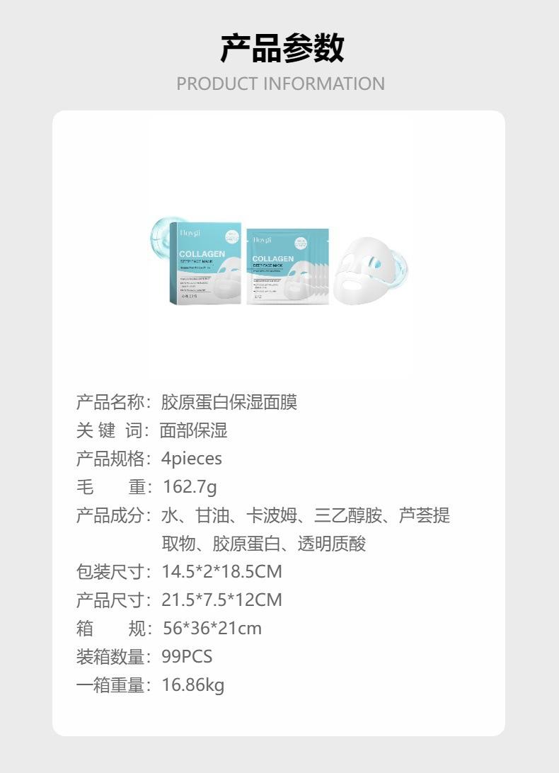 Mascarilla hidratante de colágeno HOYGI, reafirmante y suave para el rostro.