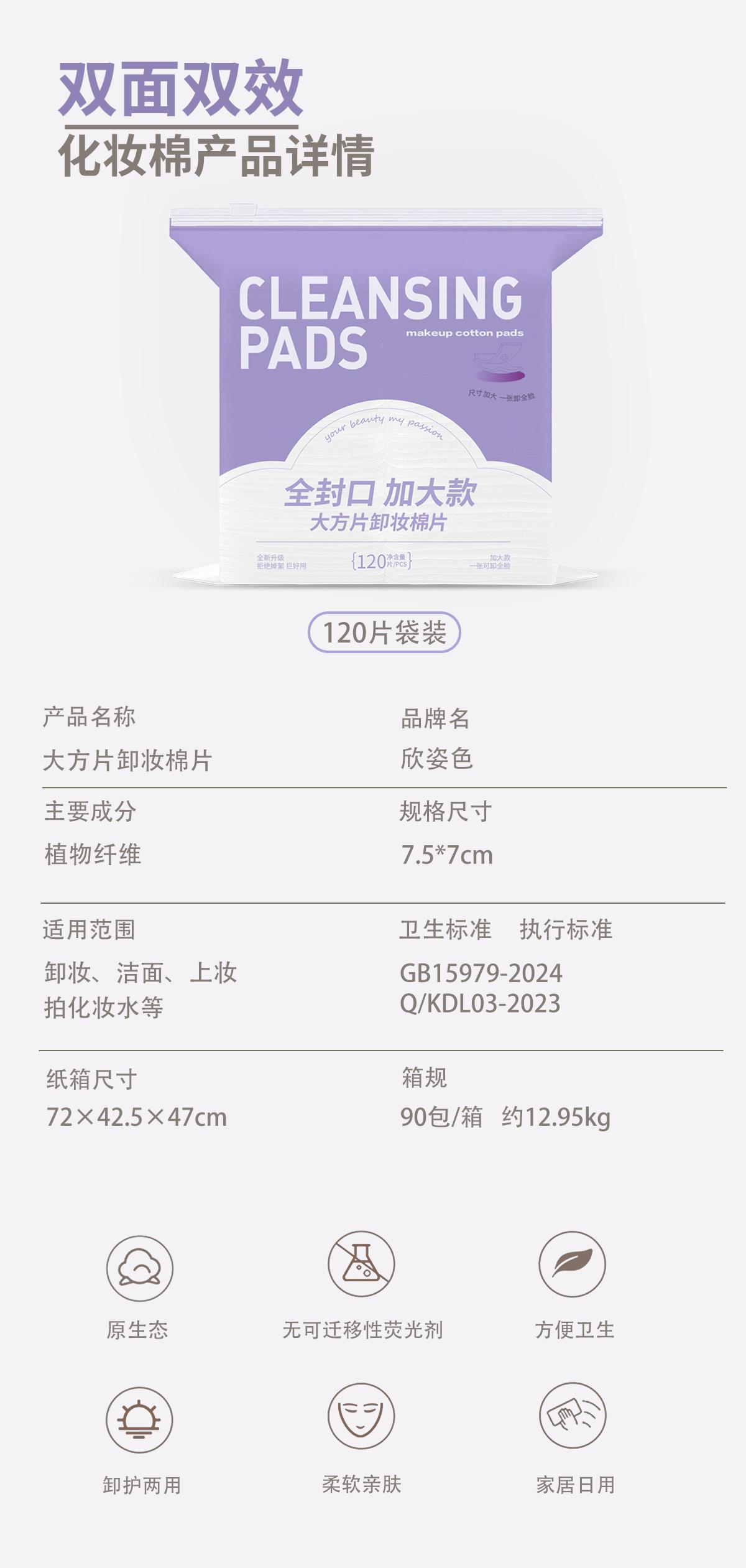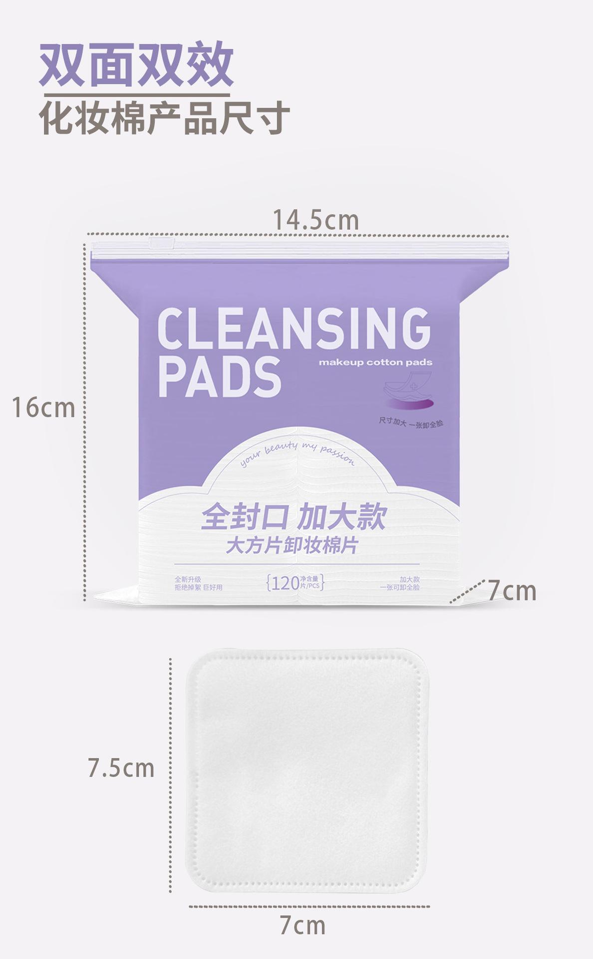 7cm*7.5cm thickened large square pieces, 120 pieces in bag, 7cm*7.5cm large square makeup remover cotton pads, 100 pieces