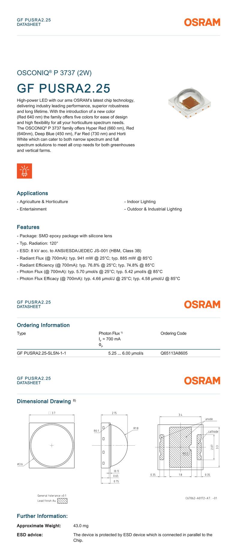 OSRAM Cuentas de Luz de Color P83737GFPUSRA2253W5W Rojo 730nmOSRAMOSCONIQ3737