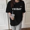 Camiseta de verano 2023 con estampado de letras, holgada, corta, retro, para estudiantes, con contraste americano, cuello redondo y manga corta para mujer