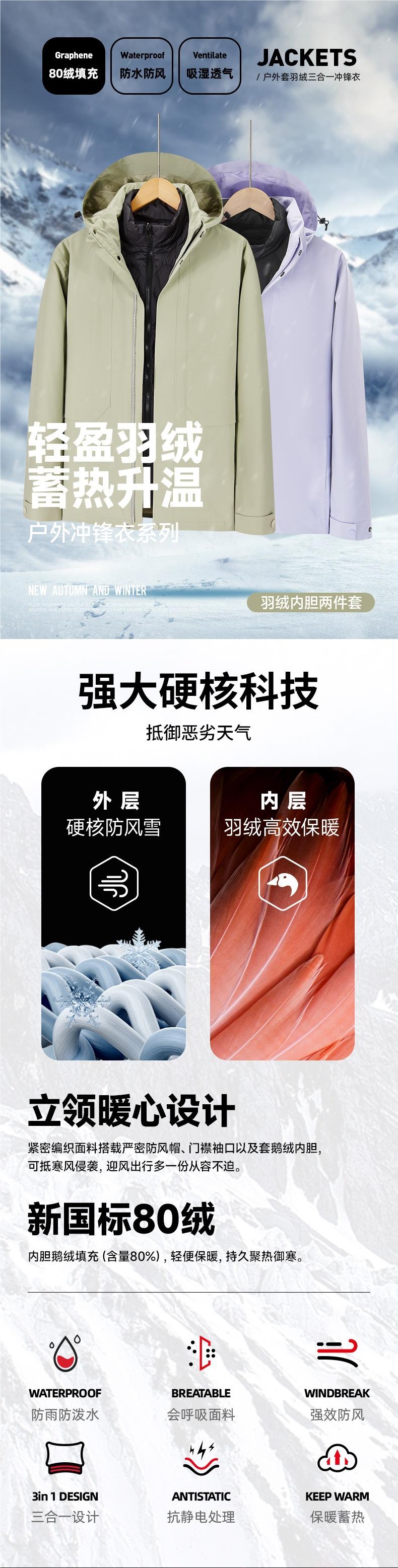 Chaqueta Exterior con Forro de Plumón Desmontable Invierno Cortavientos e Impermeable Tres en Uno Chaqueta de Esquí para Hombre y Mujer