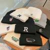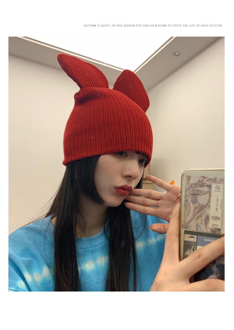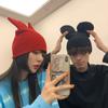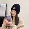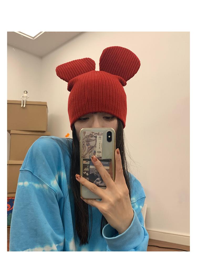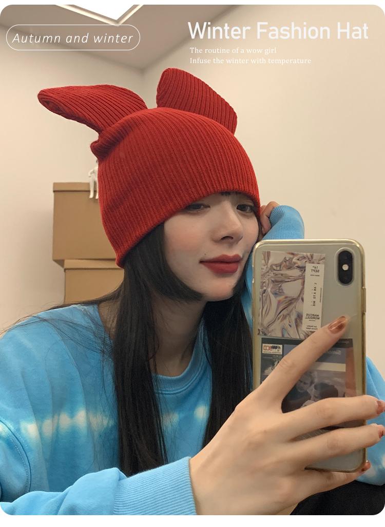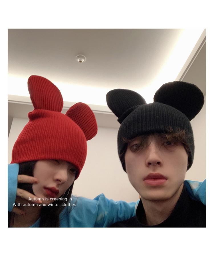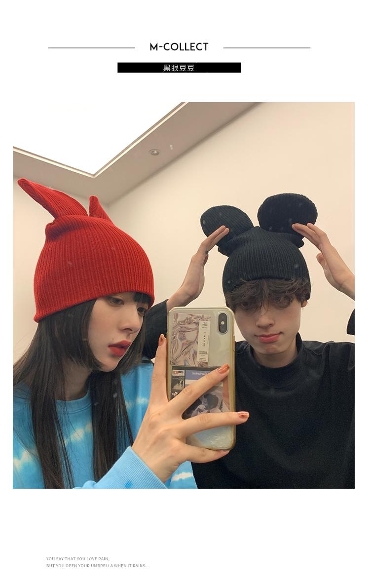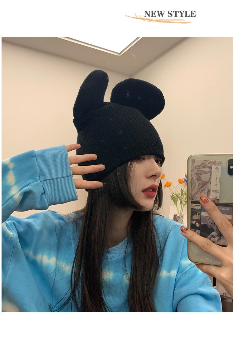 Gorro de lana negro para mujer, otoño e invierno, estilo coreano, moderno, combina con todo, bonito, con orejas grandes, cálido, de punto para hombre.