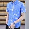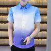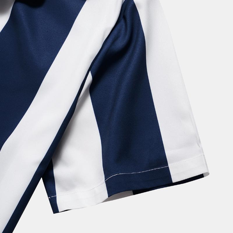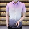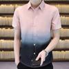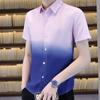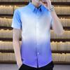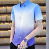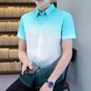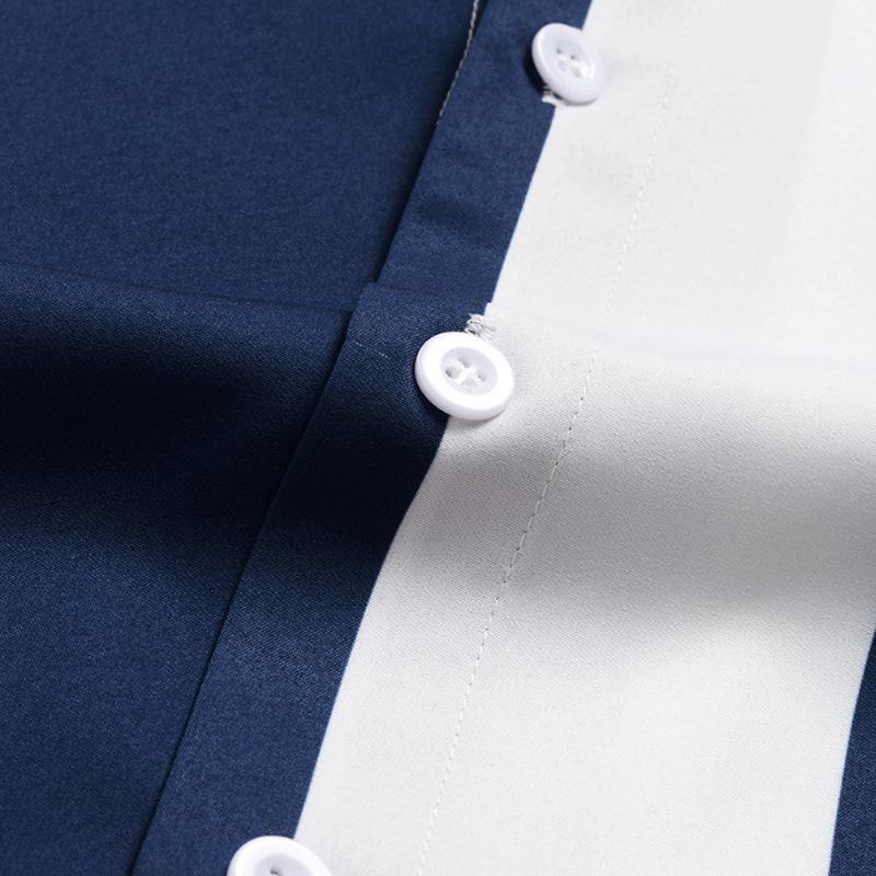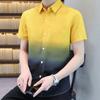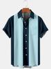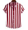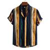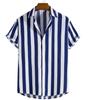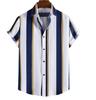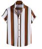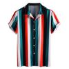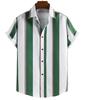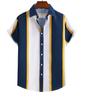 Camisa de manga corta para hombre de Amazon, nueva moda de verano, con solapa de un solo pecho y rayas de colores contrastantes.