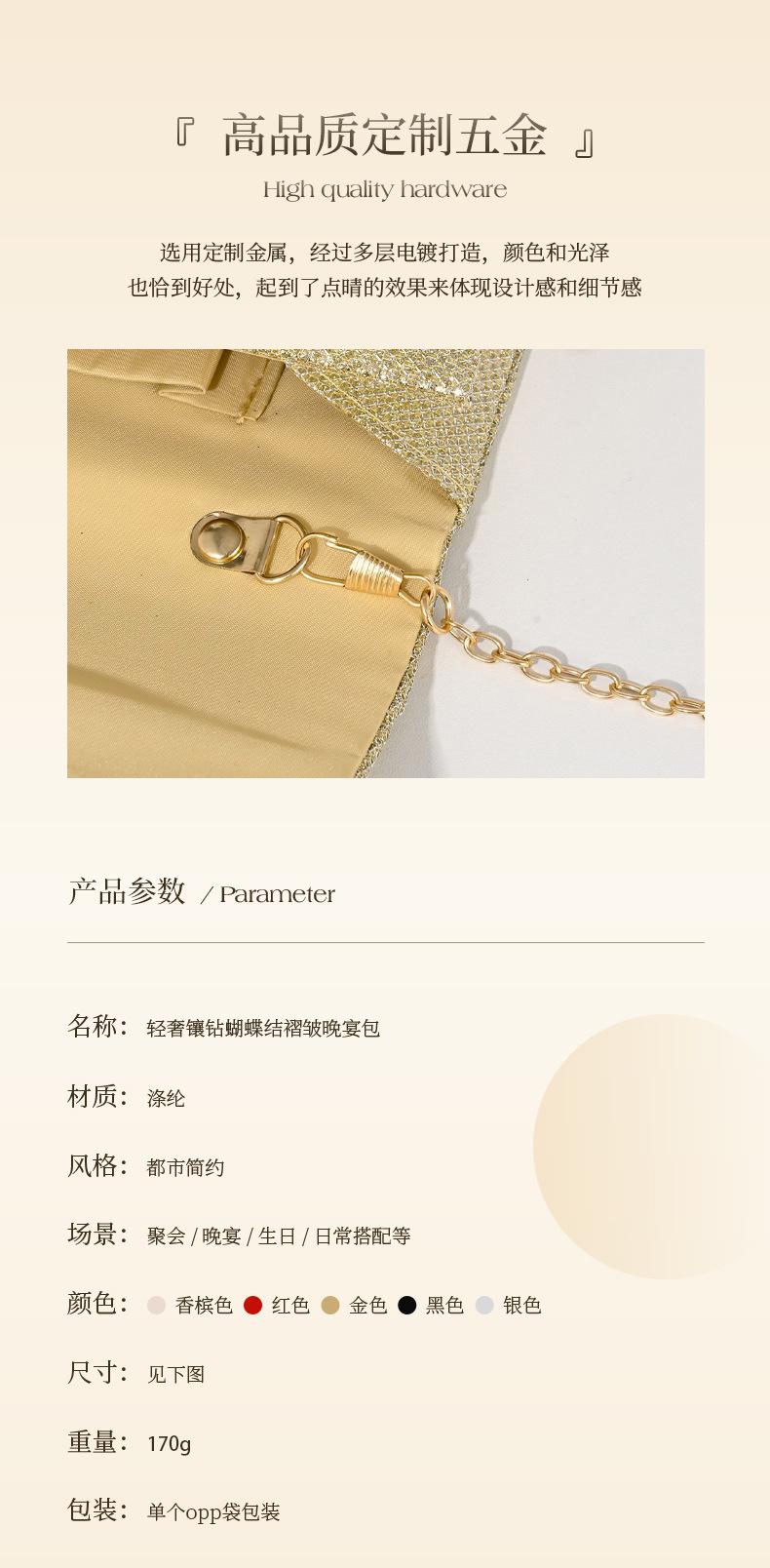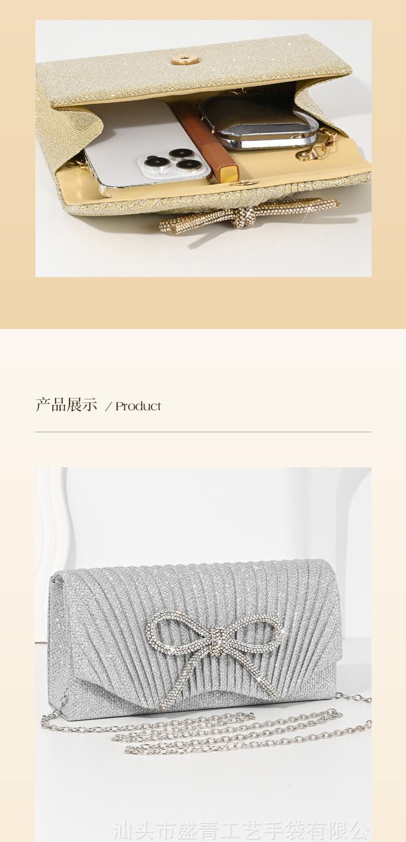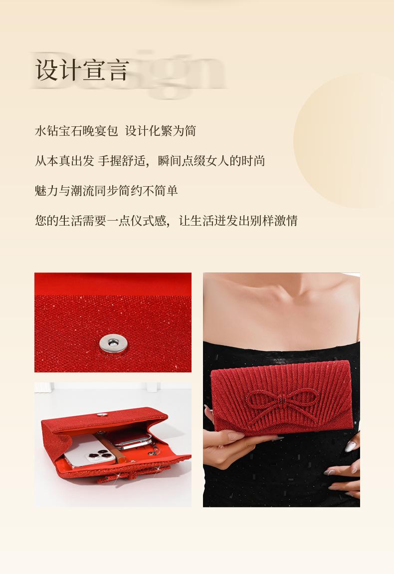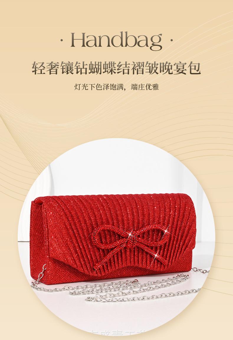 Nuevo Bolso Lazo Transfronterizo Bolso de Noche Diamante Rojo Bolso Clutch para el Día de San Valentín Mini Bolso de Noche Plisado para Mujer