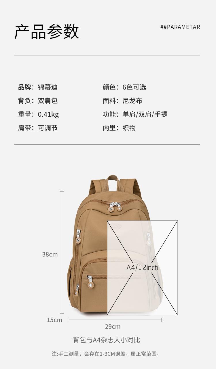 Mochila de Tela de Nailon 2025 Nueva Moda Mochila Simple Gran Capacidad Bolsa Casual de Viaje para Mujer para Exterior