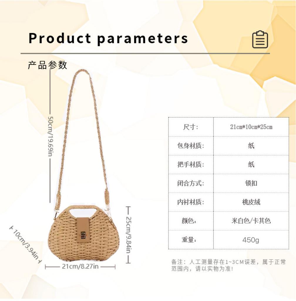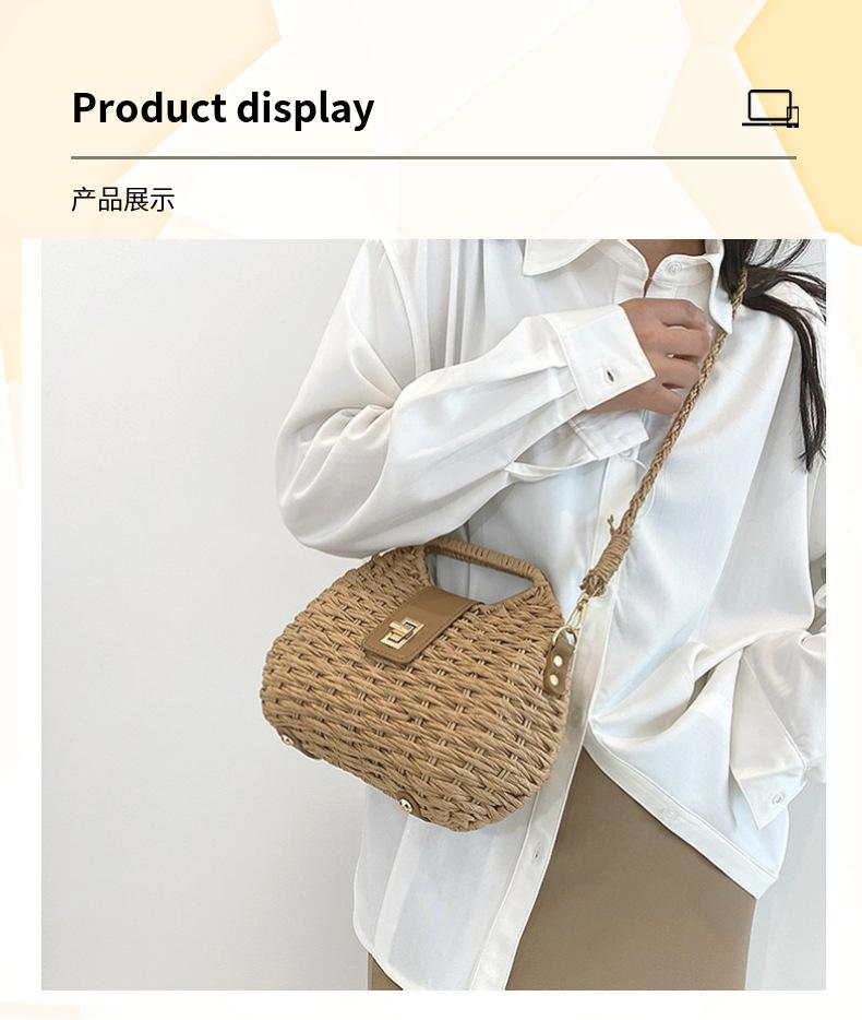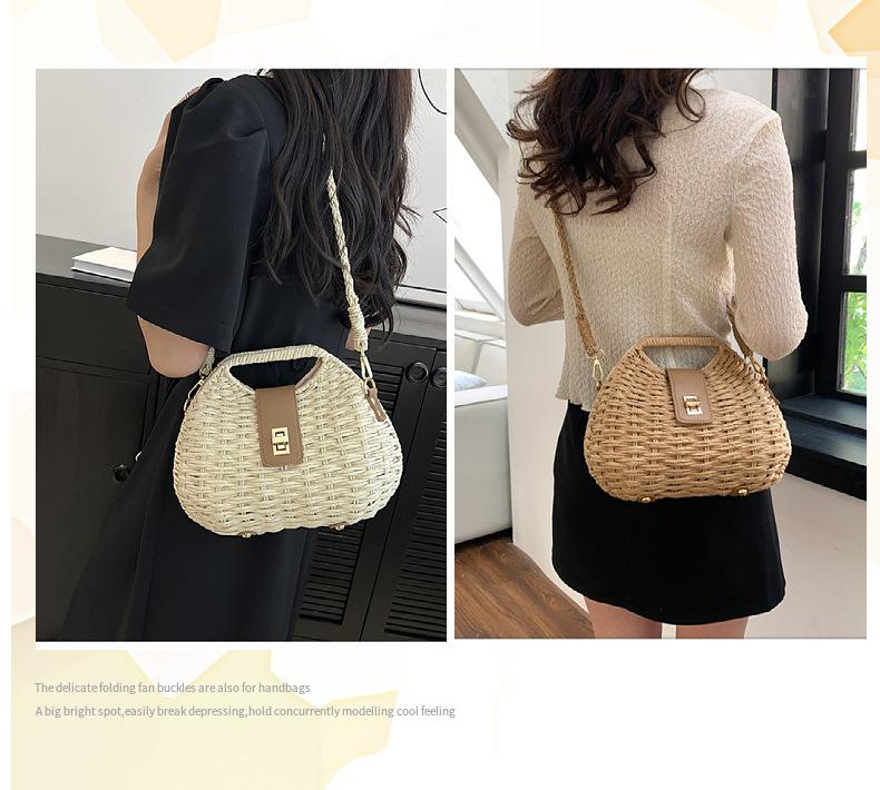 Nuevo Bolso de Paja de Hombro Versátil de Verano Bolso Cruzado Bolso Tejido a Mano para Mujer Bolso de Mano de Playa para Vacaciones Junto al Mar