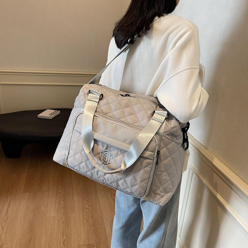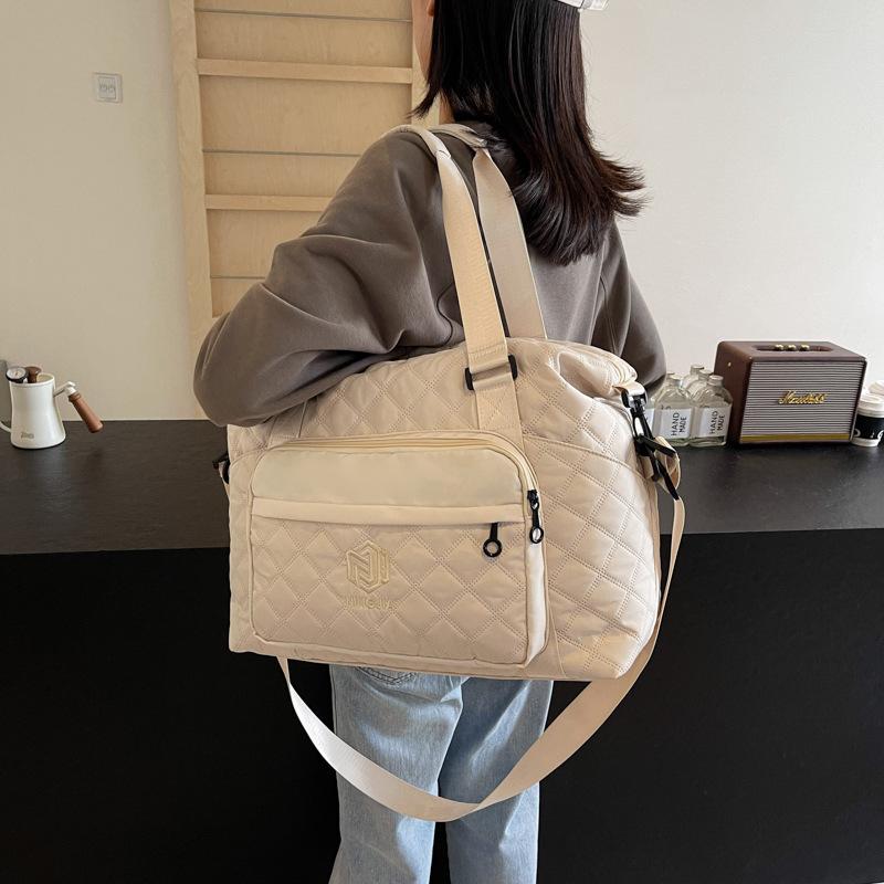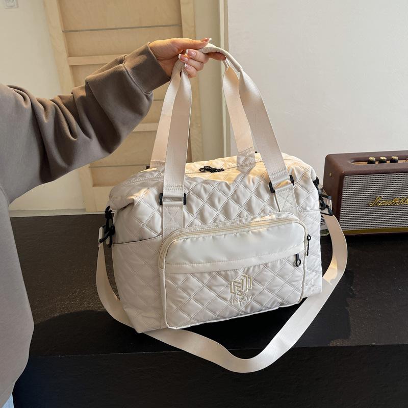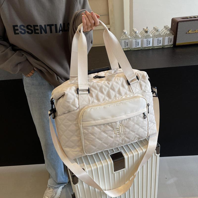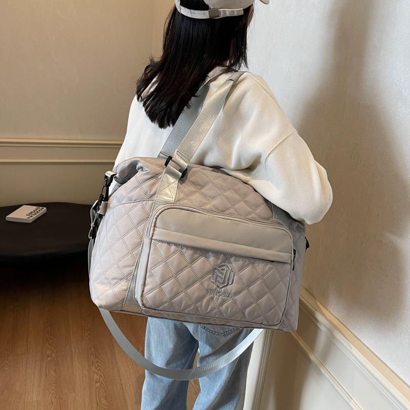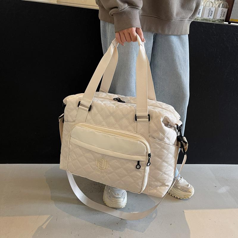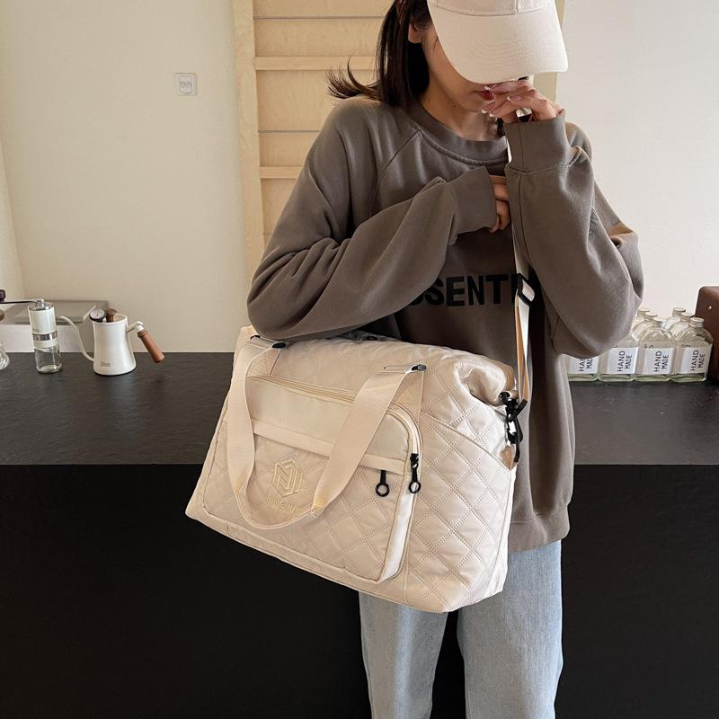 Bolsa de gimnasio deportiva de moda para mujer, con separación de ropa seca y húmeda, con diseño romboidal, para ocio, portátil, con funda y carrito