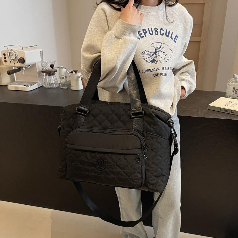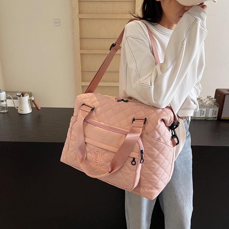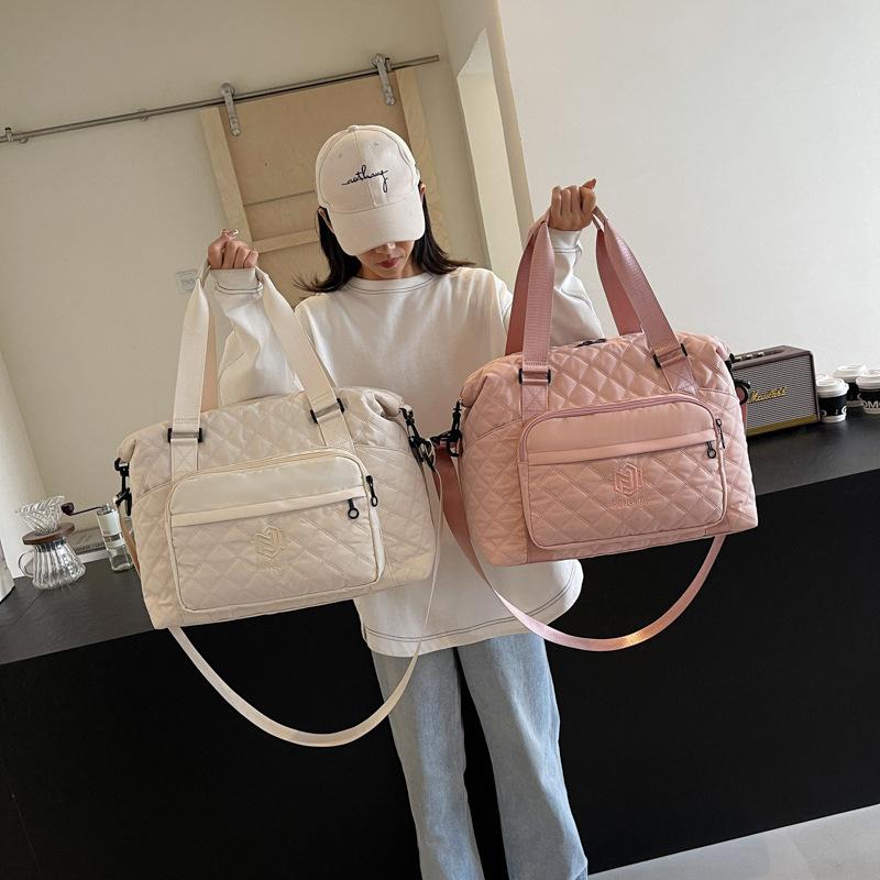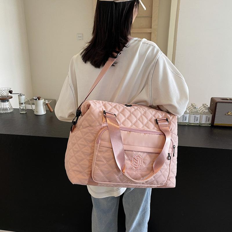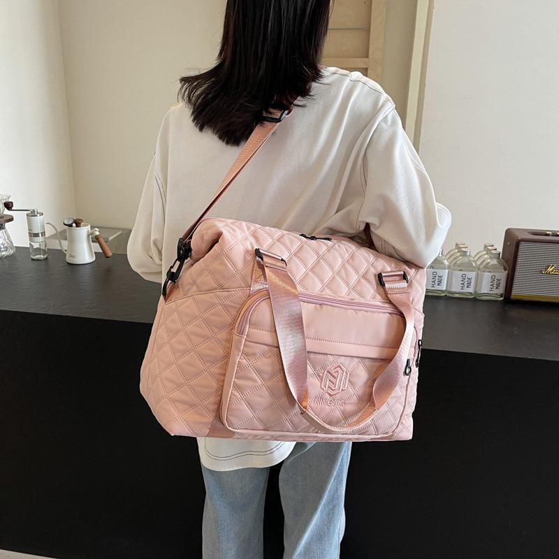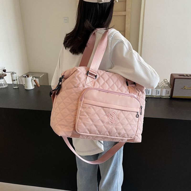 Compra Bolsa de gimnasio deportiva de moda para mujer, con separación de ropa seca y húmeda, con diseño romboidal, para ocio, portátil, con funda y carrito al por mayor en Joom.pro