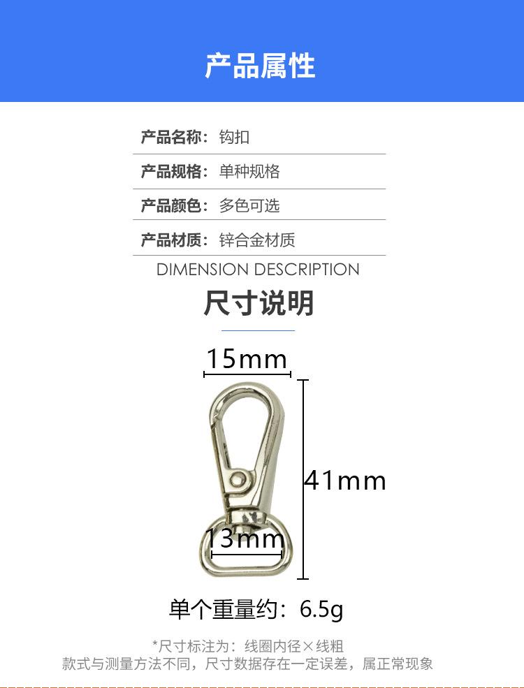 Llavero con gancho de 13 mm de diámetro interior, hebilla de langosta grande, hebilla de conexión para perro, accesorios de hardware para bolso