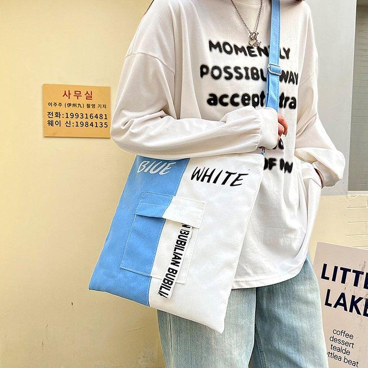 Bolso de Hombro Simple de Moda 2024 Verano Nuevo Casual Combinable Bolso de Hombro de Lona Estudiantes Bolso de Lona de Gran Capacidad
