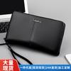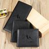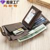 Cartera de cuero genuino de alta gama para hombre, billetera corta de dos pliegues, billetera informal de negocios de cuero de vaca con cepillo antirrobo.