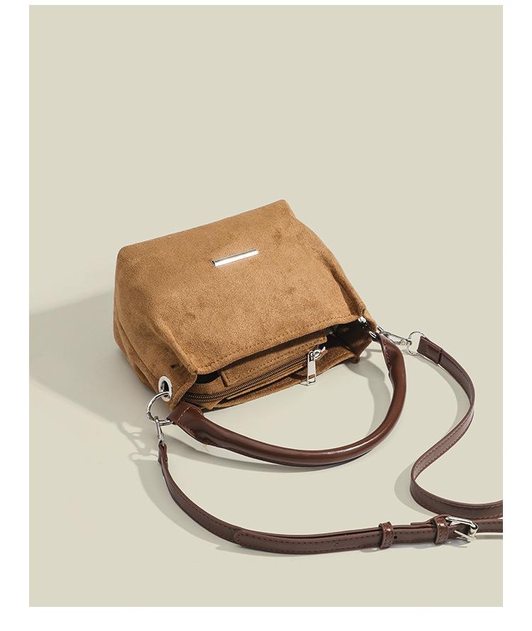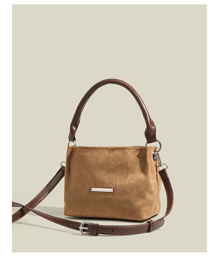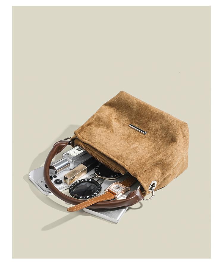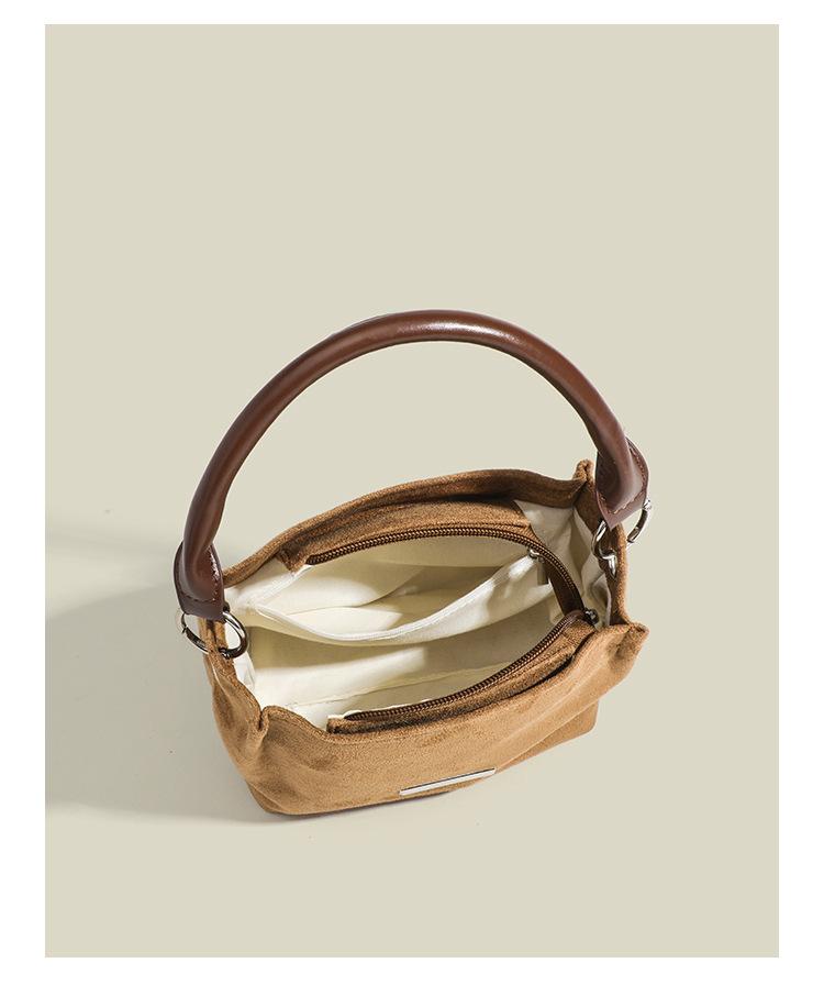 Bolso de Cubo para Mujer 2025 Nueva Moda Otoño e Invierno Combinable Bolso de Mano Suede para Mujer para Viaje Simple Bandolera para Mujer