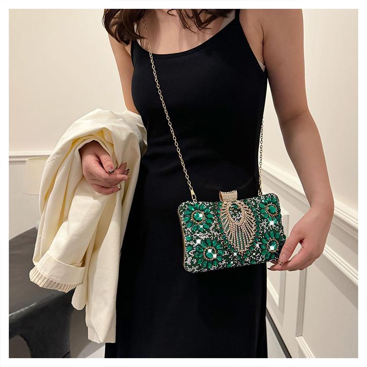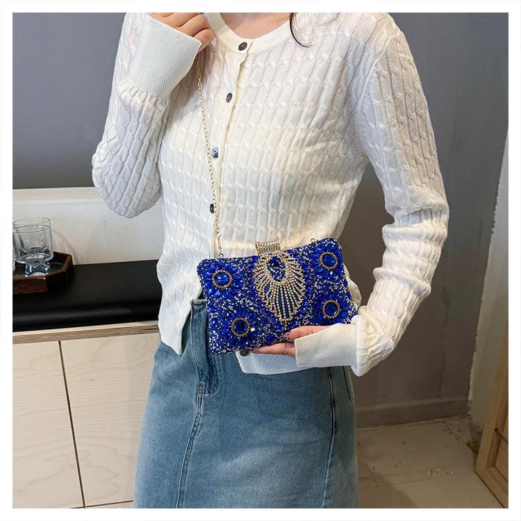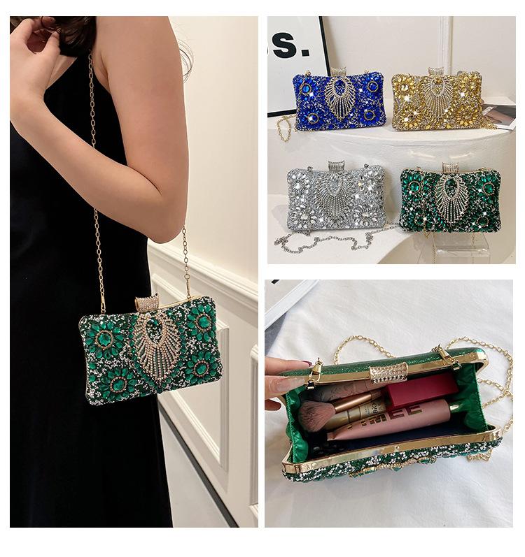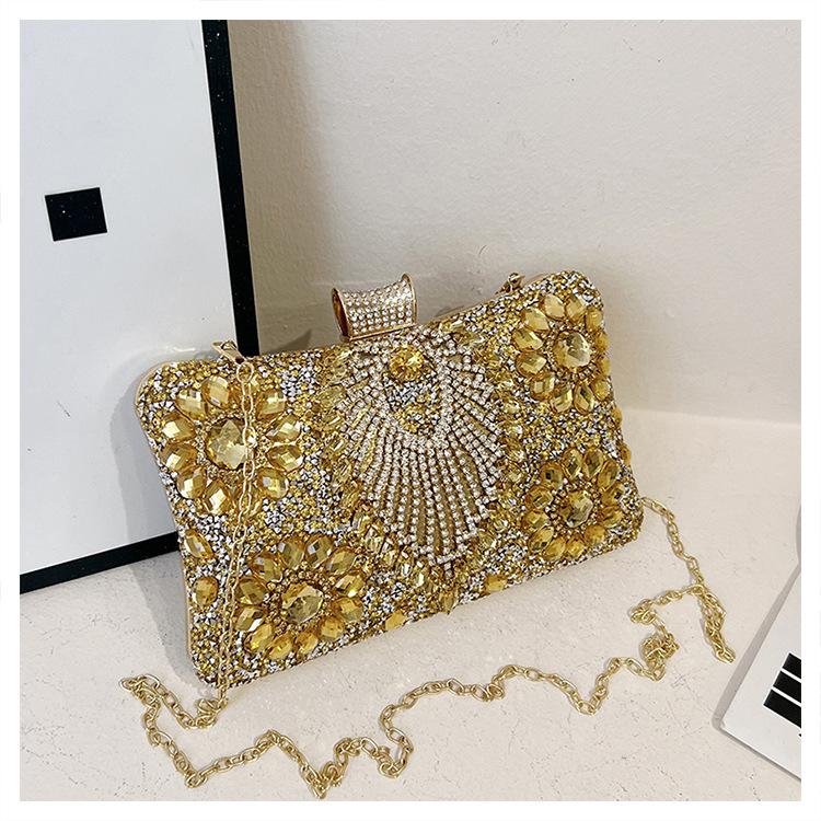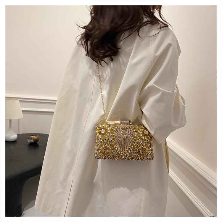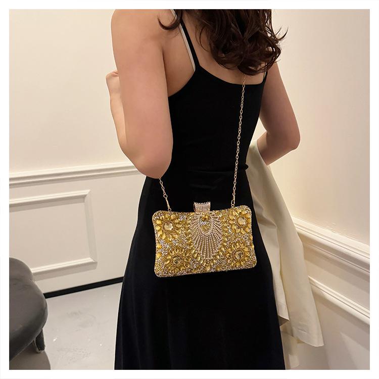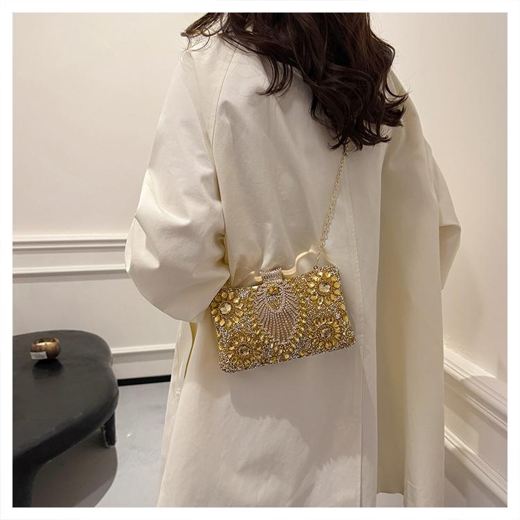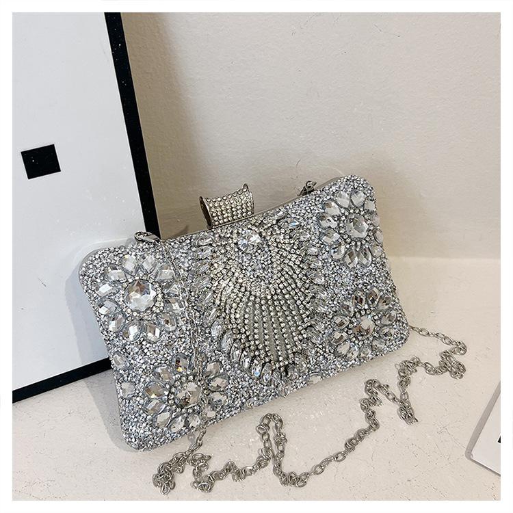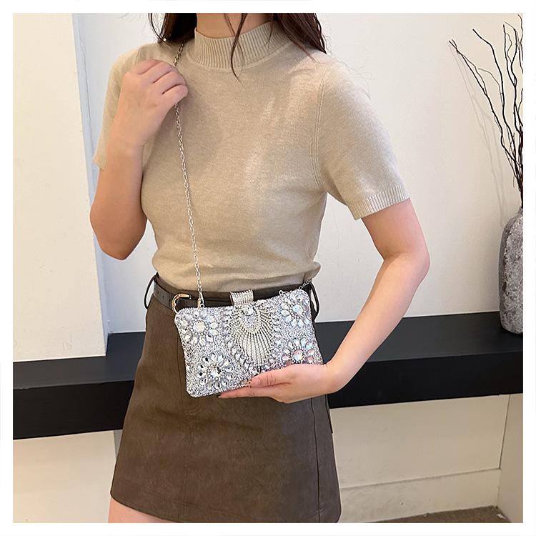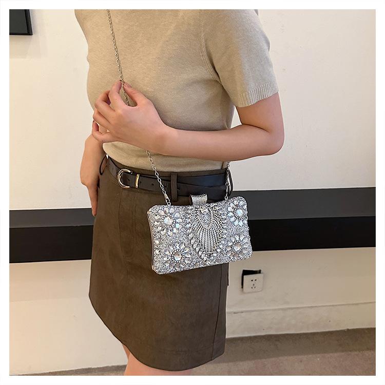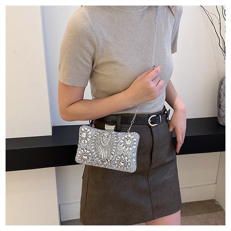 Bolso de Cena Transfronterizo Nuevo con Pedrería Bolso Clutch de Banquete con Incrustaciones de Diamantes Europeo y Americano Bolso de Mano con Pedrería Bolso para Vestido de Celebridad Bolso Pequeño