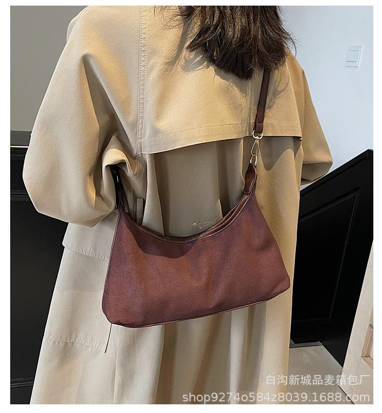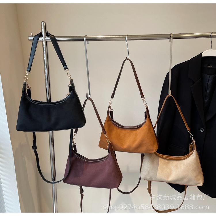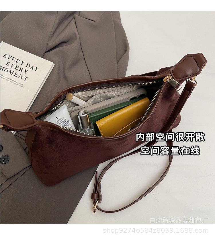 Bolso pequeño de moda de gamuza al por mayor de fábrica, superficie suave, para mujer, nuevo 2024, alta textura, comodín, tipo dumpling para llevar cruzado