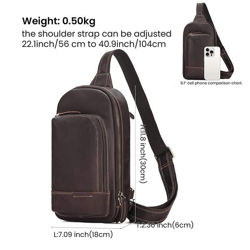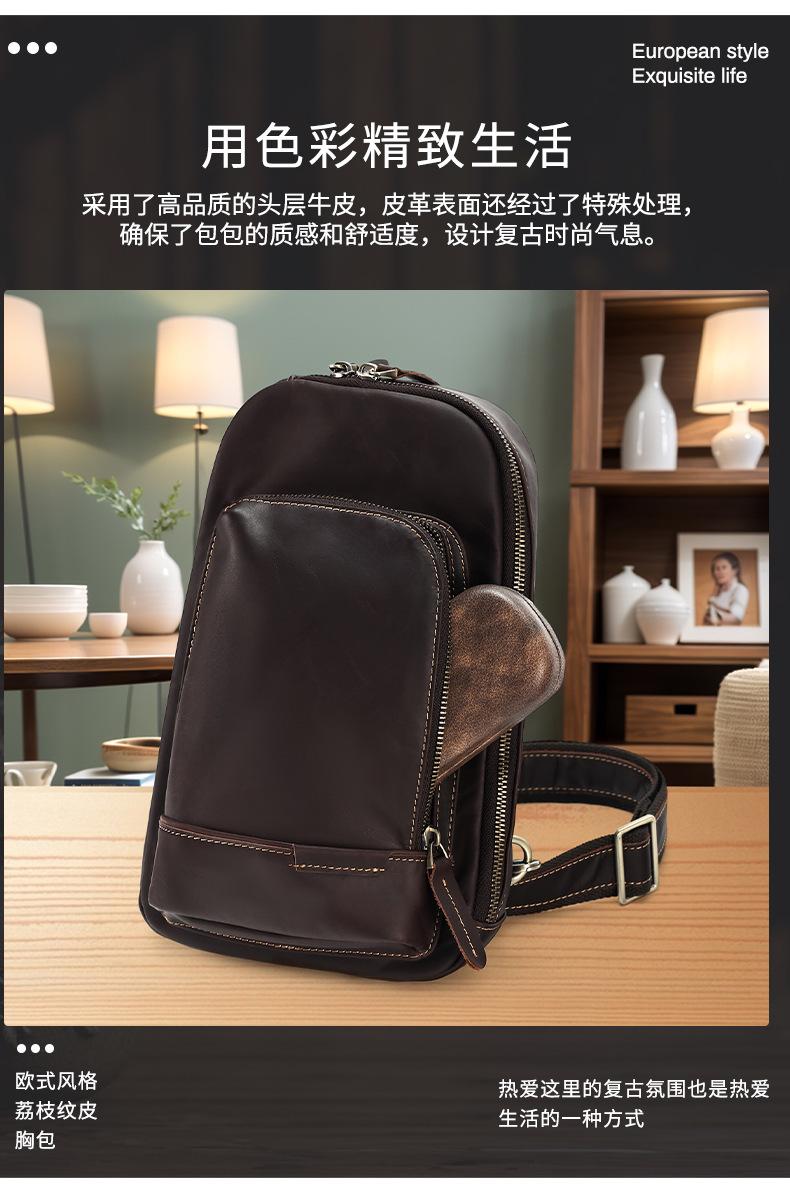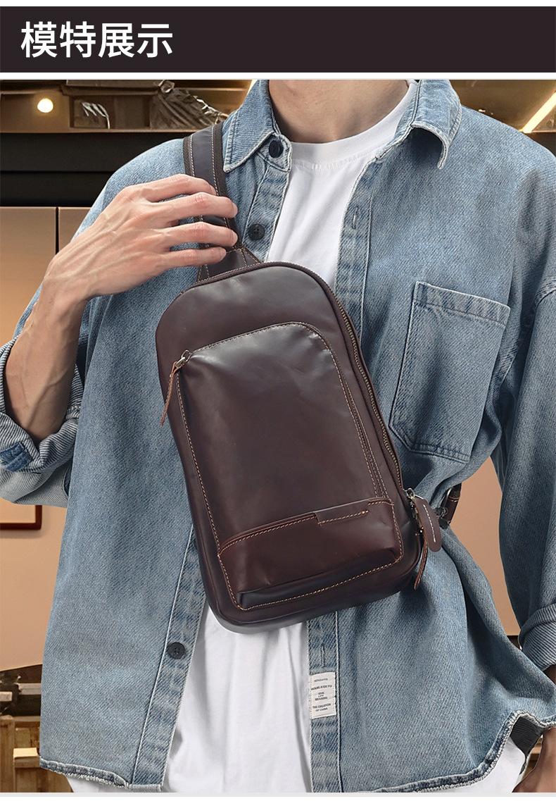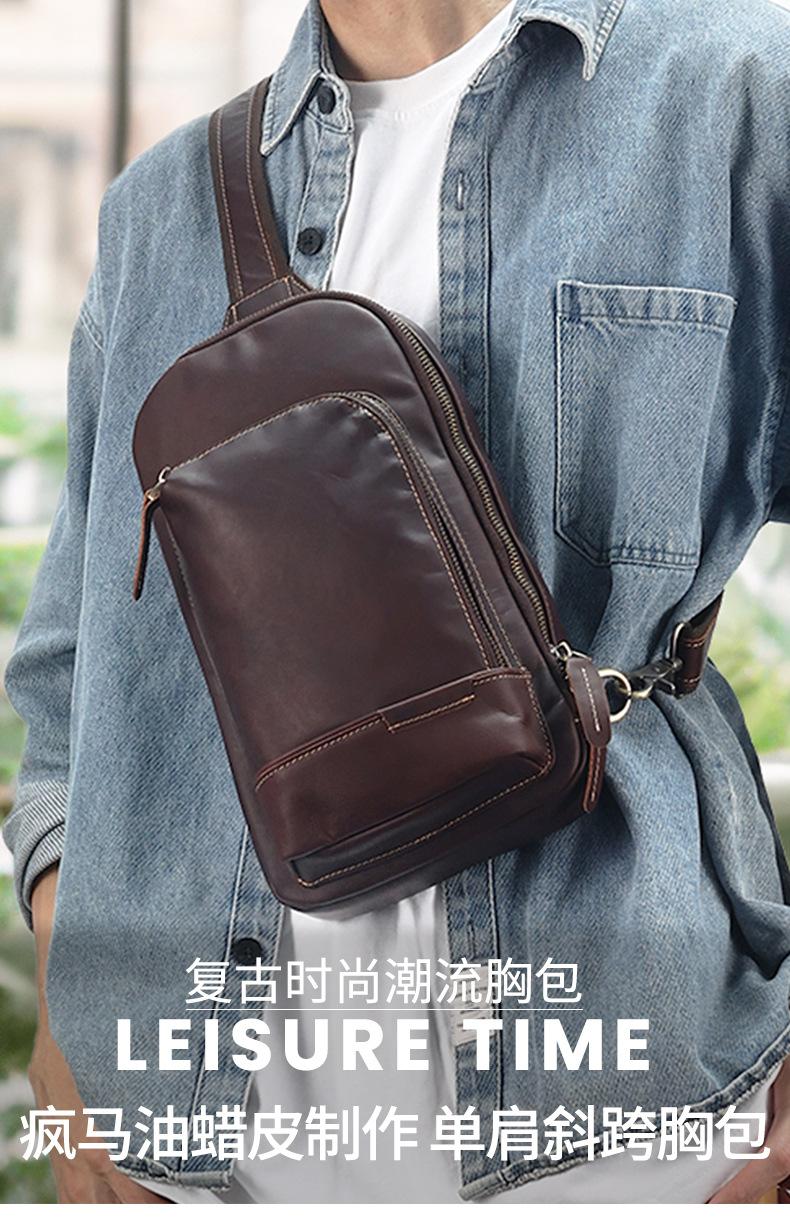 Nuevo Bolso de Pecho para Hombre de Cuero Genuino Crazy Horse Transfronterizo para Viaje al Aire Libre de Gran Capacidad Bolso Bandolera Retro Simple Bolso de Pecho para Hombre
