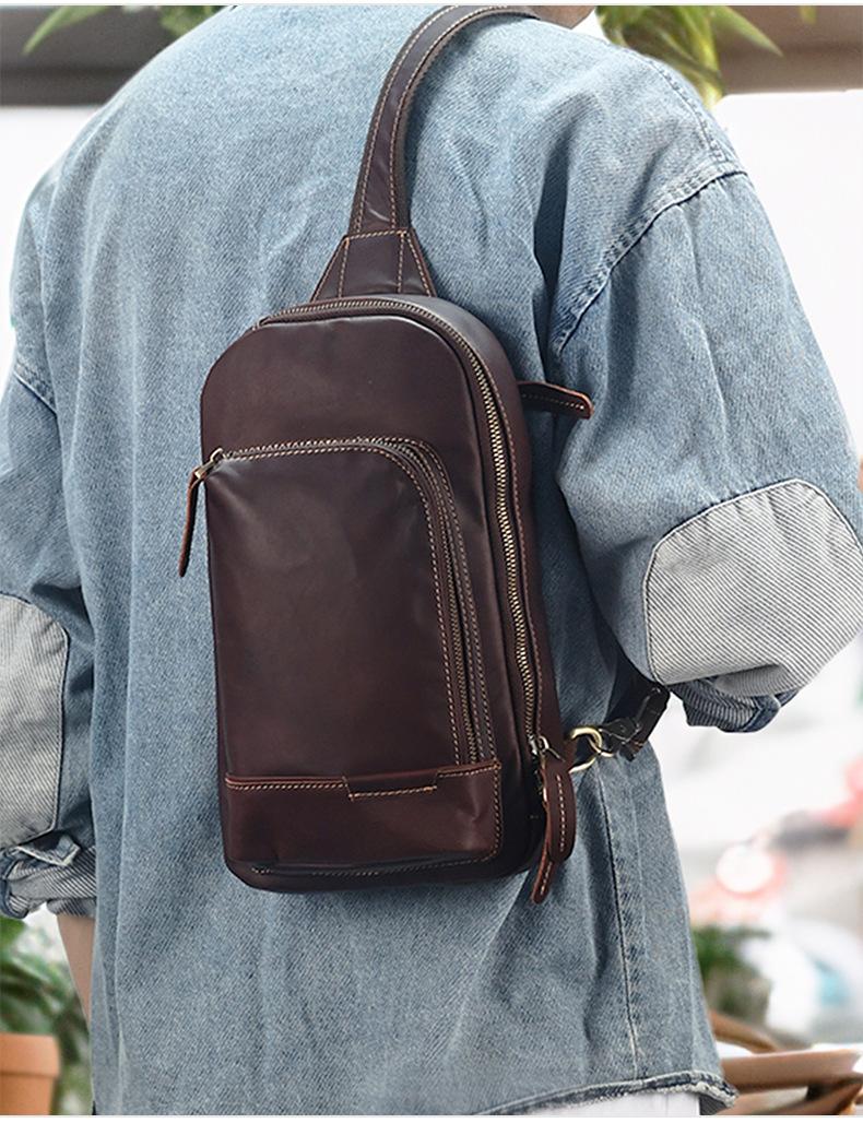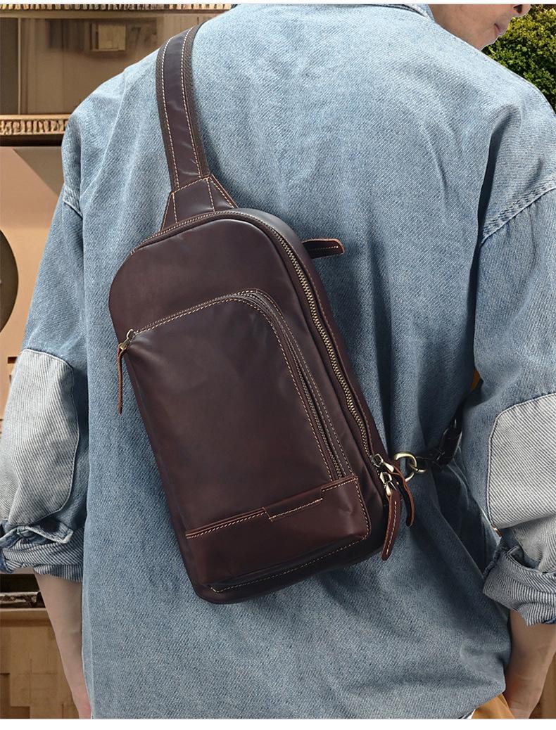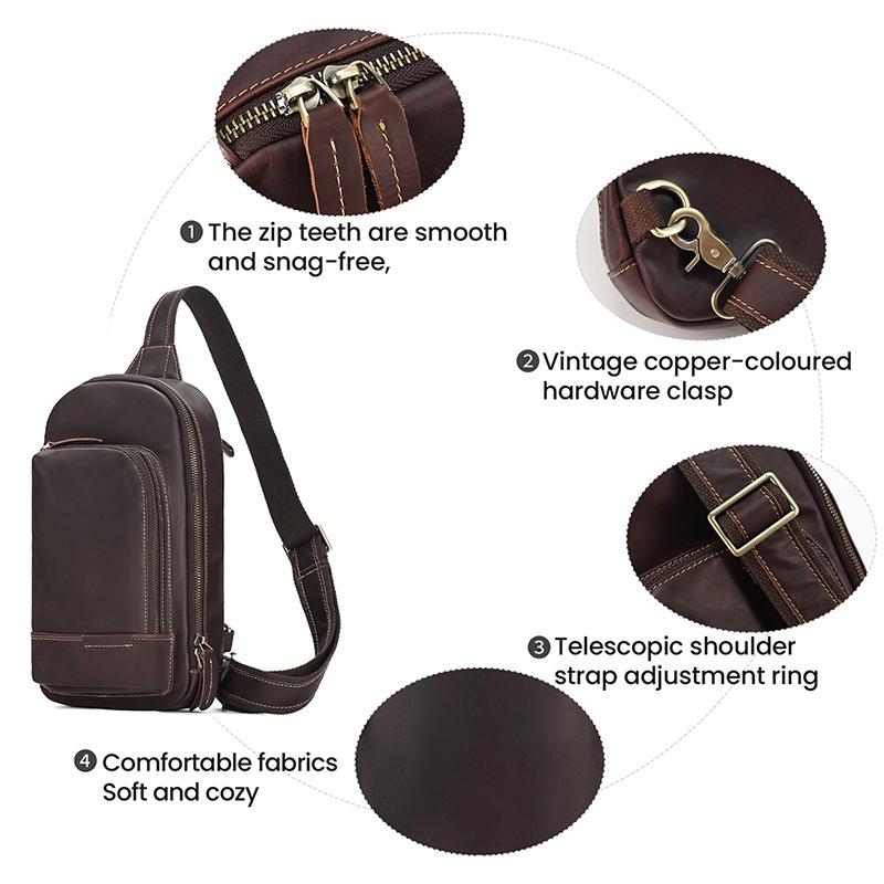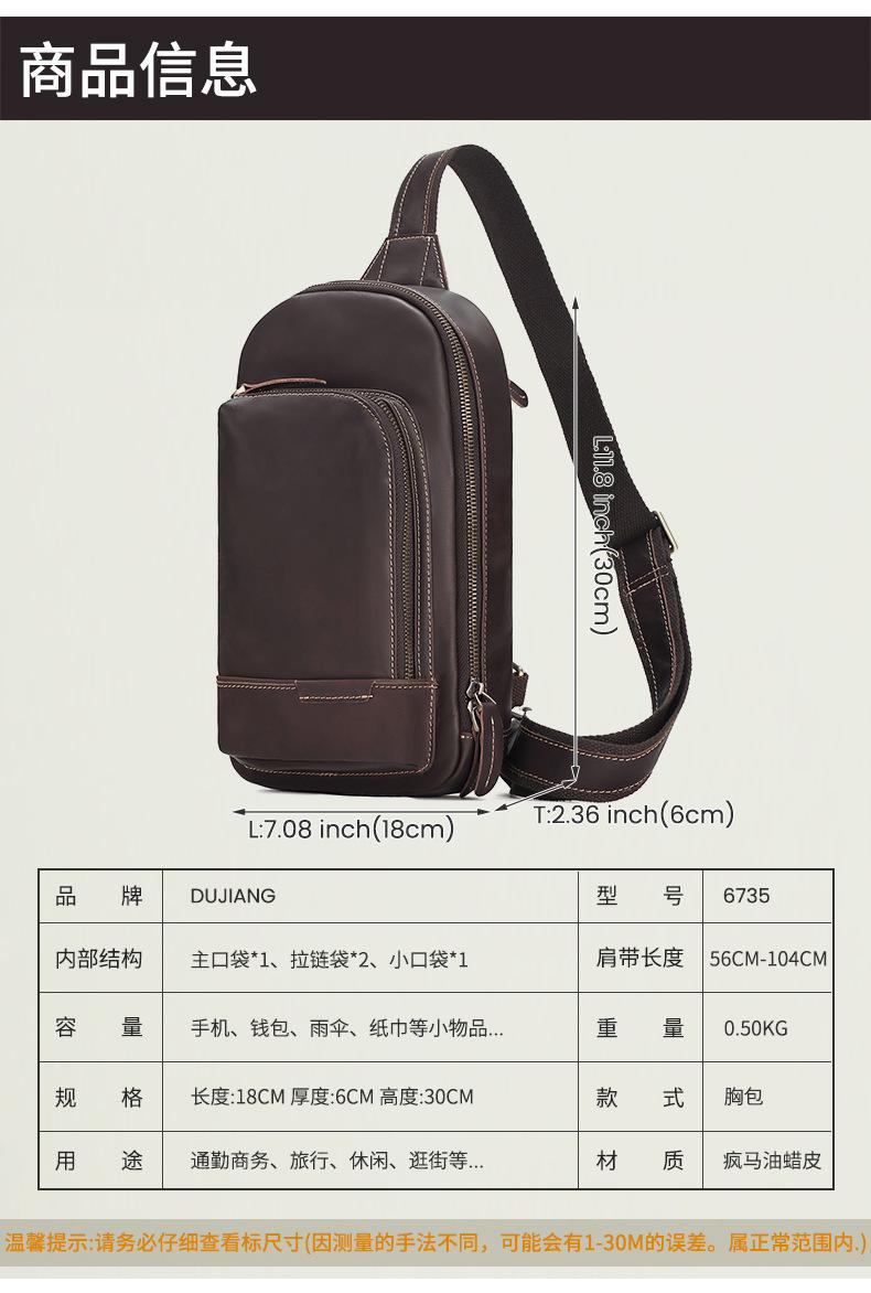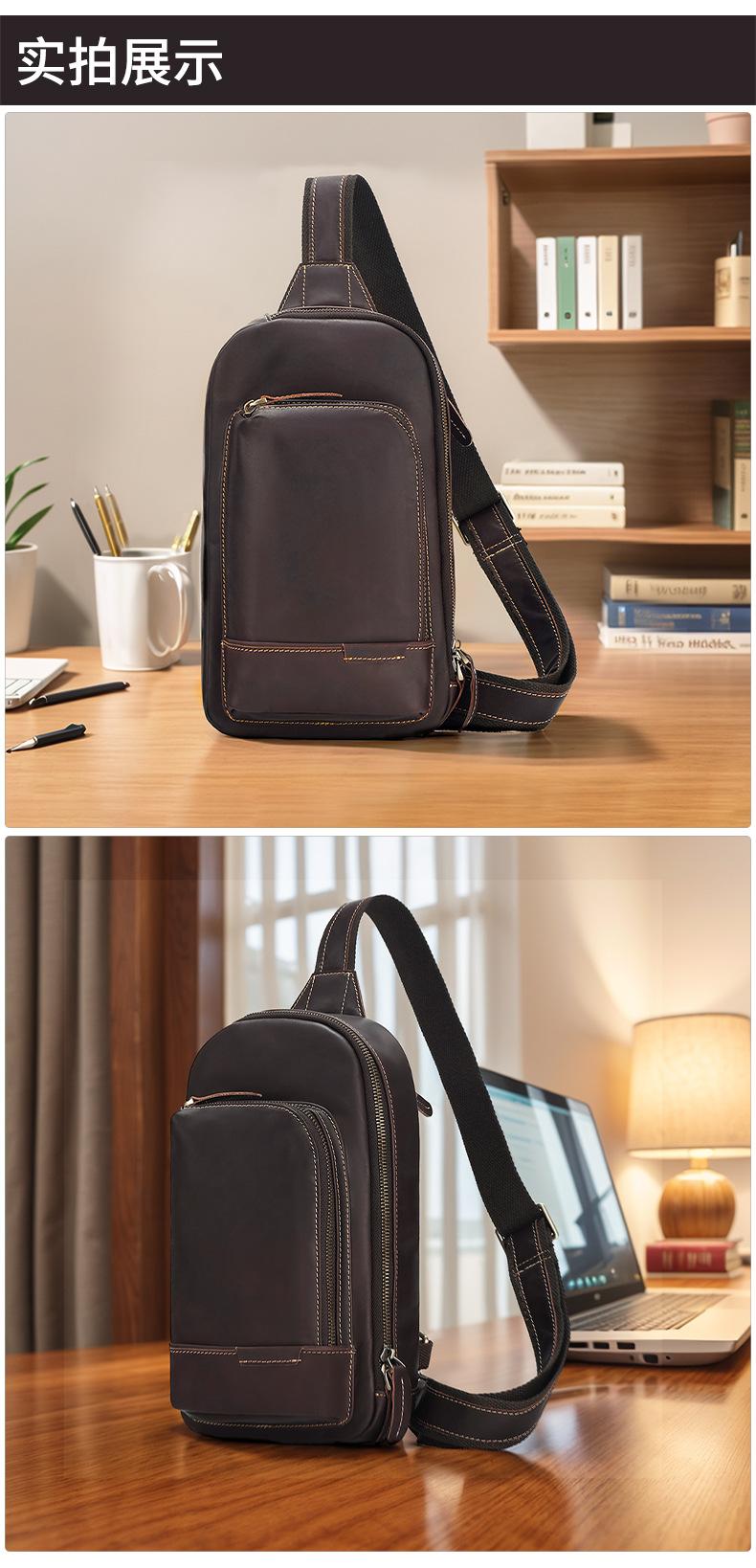 Nuevo Bolso de Pecho para Hombre de Cuero Genuino Crazy Horse Transfronterizo para Viaje al Aire Libre de Gran Capacidad Bolso Bandolera Retro Simple Bolso de Pecho para Hombre