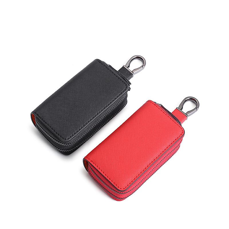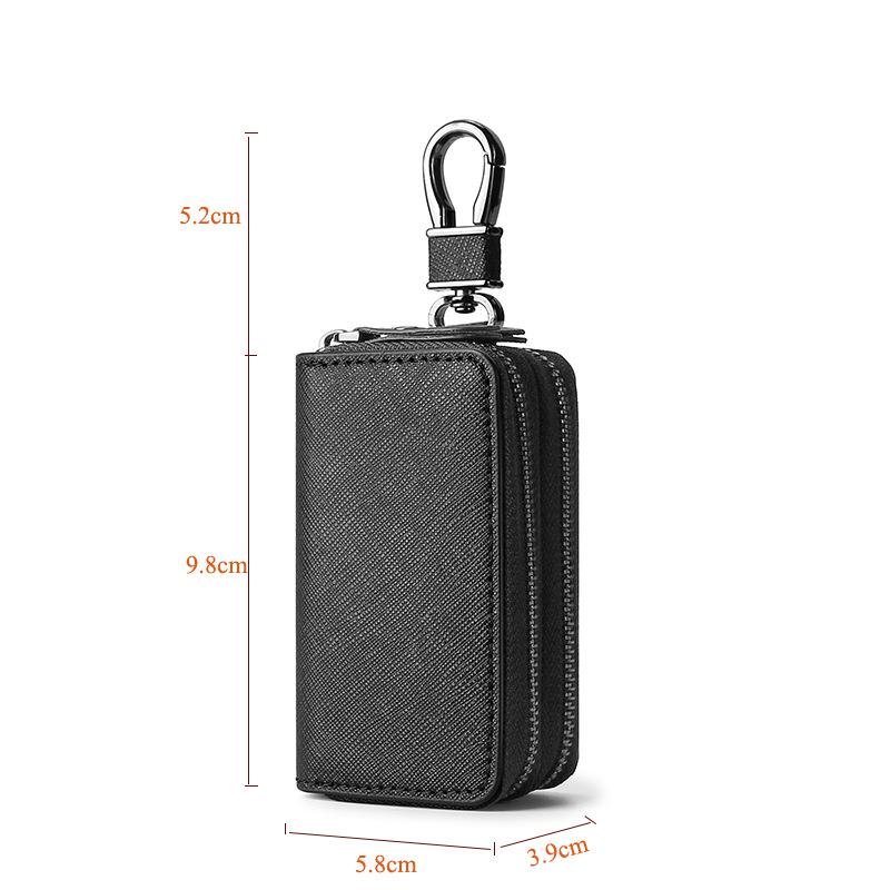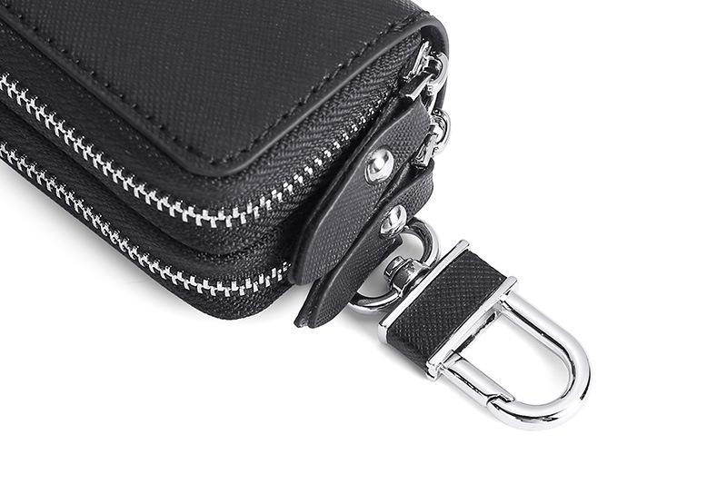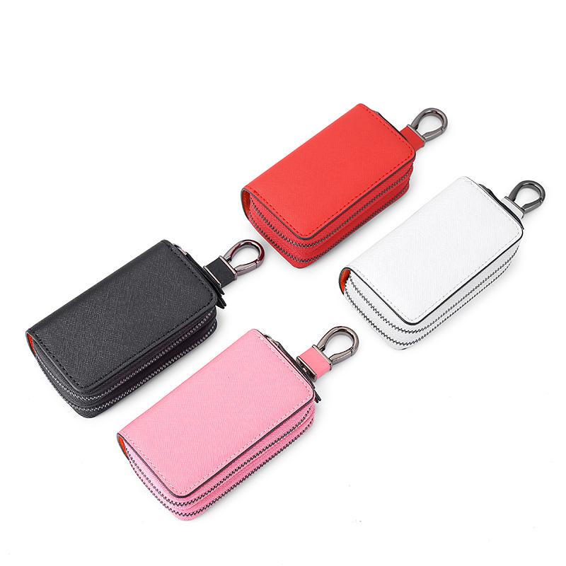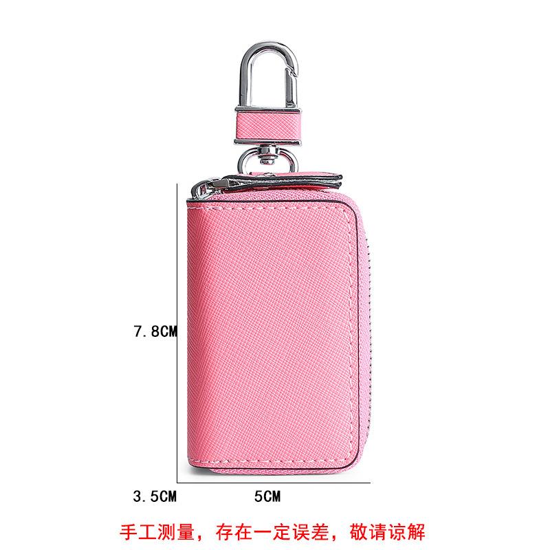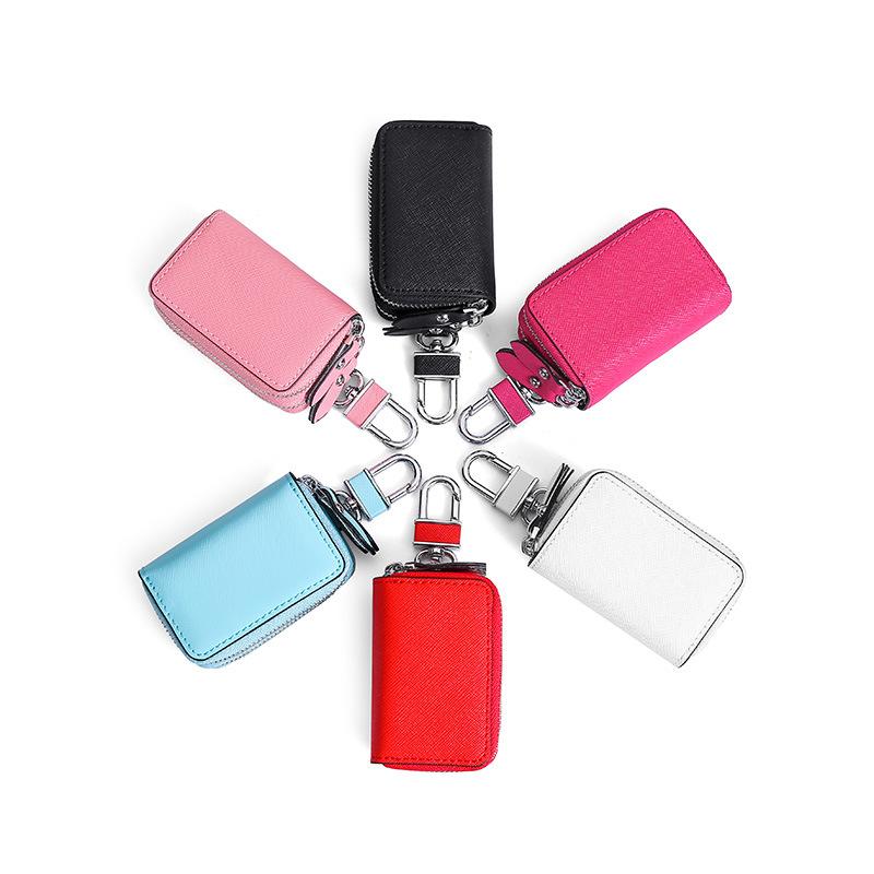 Llavero de piel Saffiano de doble capa, funda protectora para llaves de coche, llavero con cremallera estilo japonés para mujer.