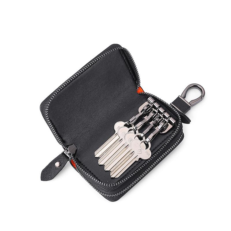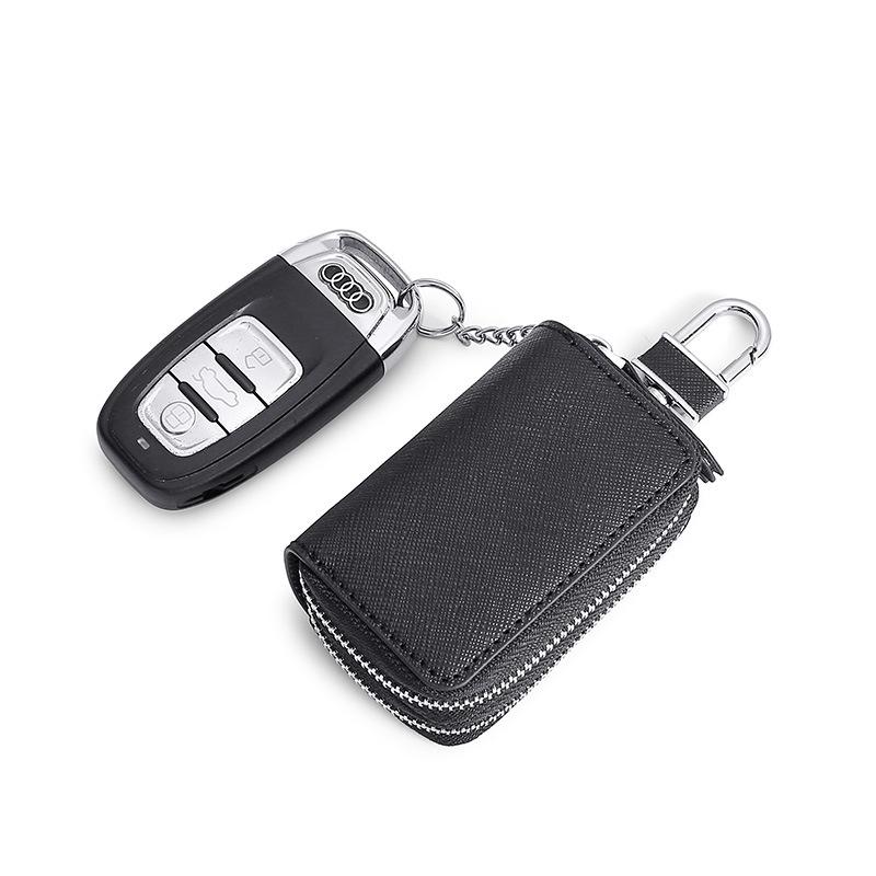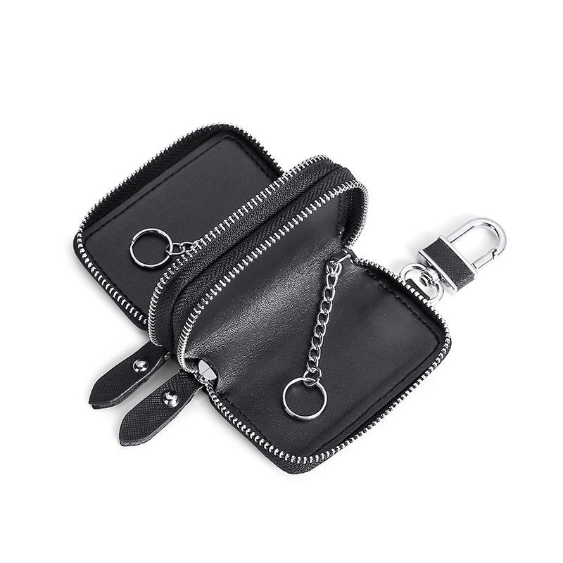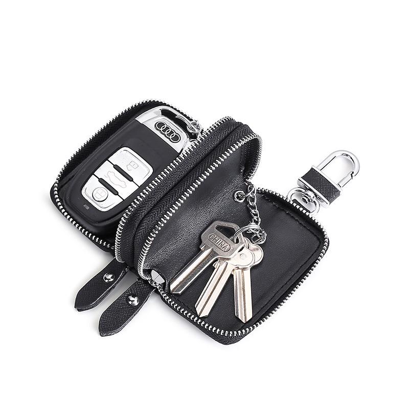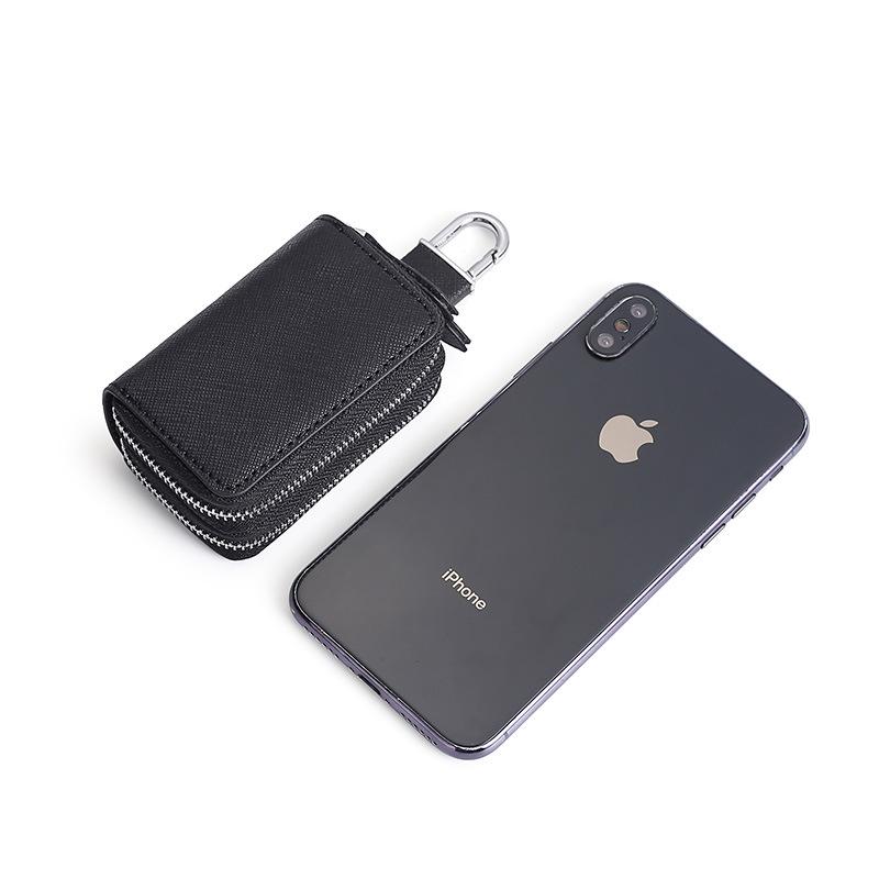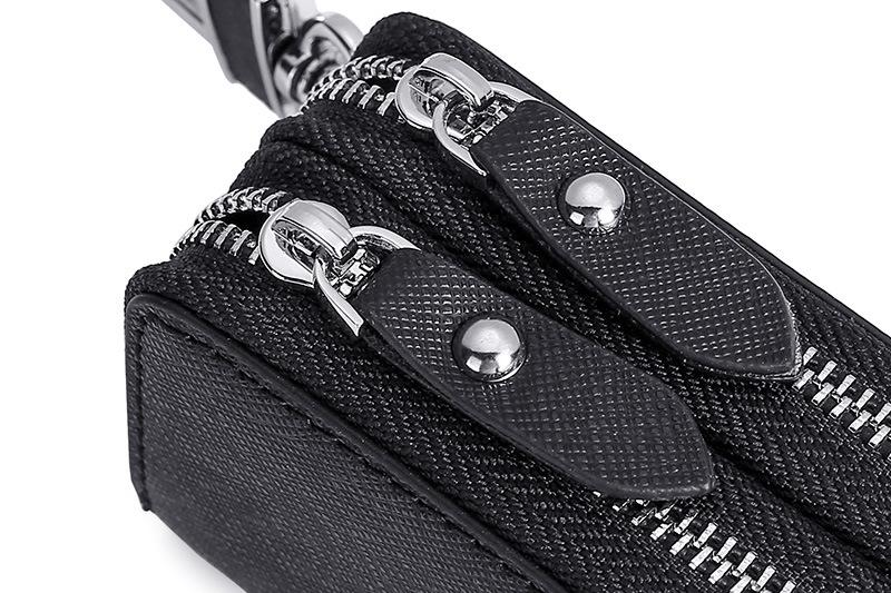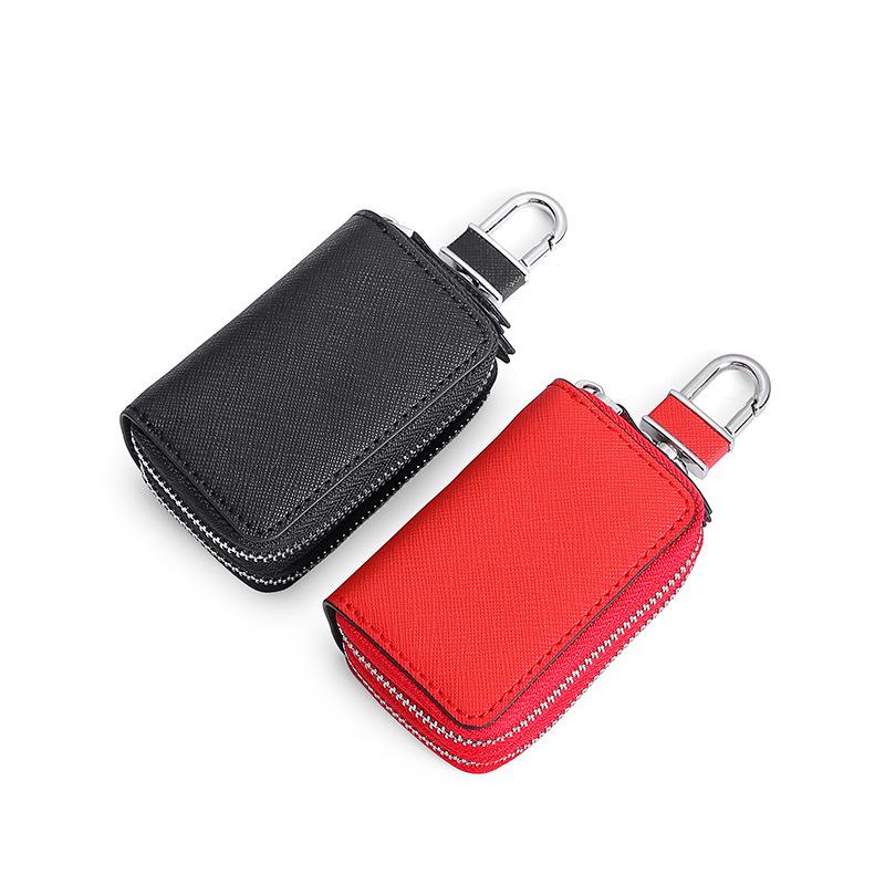 Llavero de piel Saffiano de doble capa, funda protectora para llaves de coche, llavero con cremallera estilo japonés para mujer.