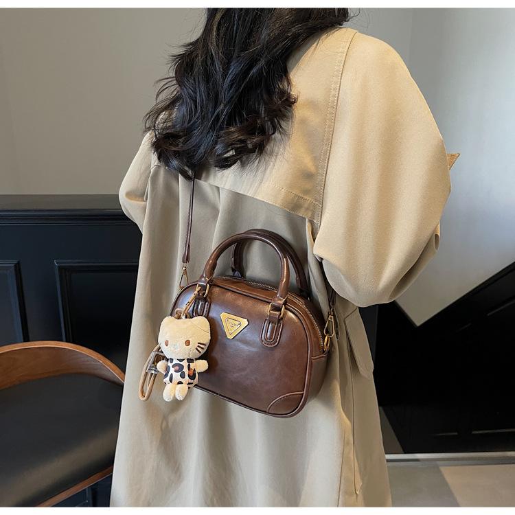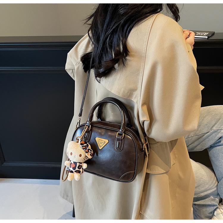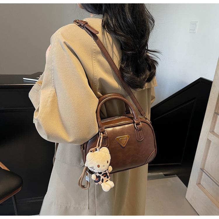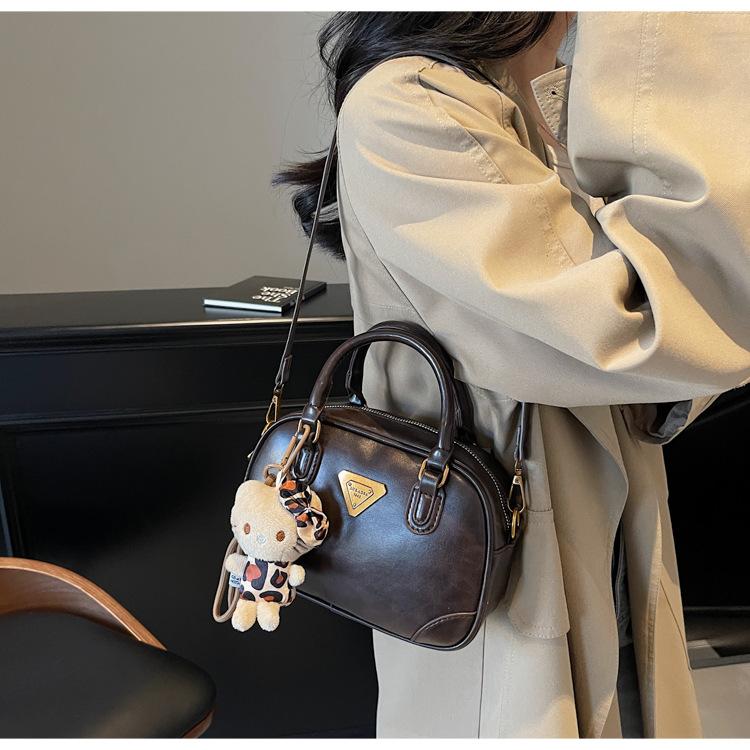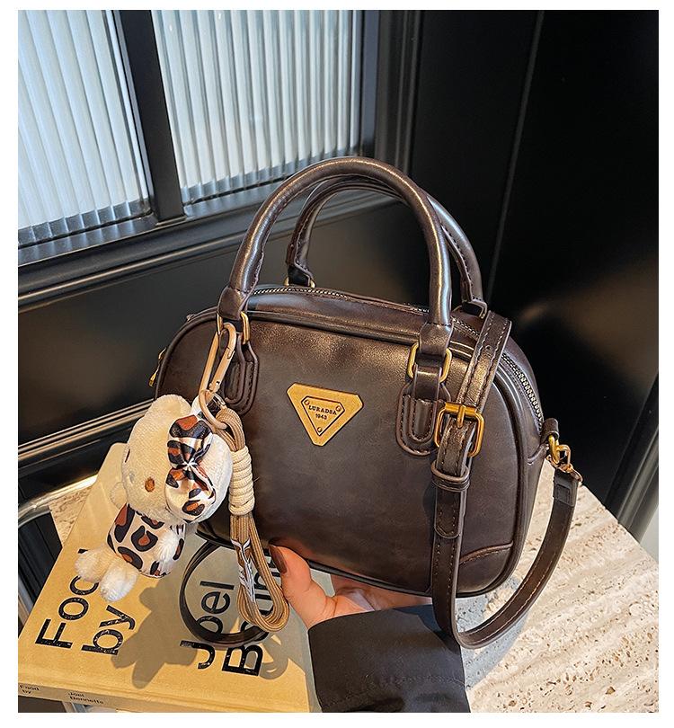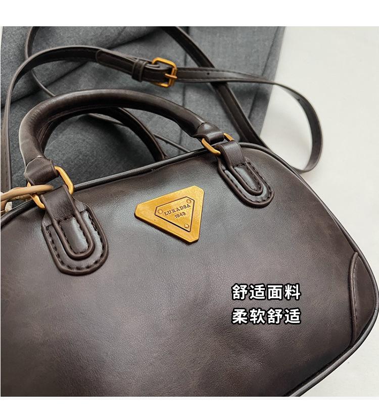 Bolso Satchel de Diseño Retro Bolso Boston 2025 Nuevo Diseño Nicho Bolso Cruzado para Viajero Bolso de Hombro con Textura Escarchada