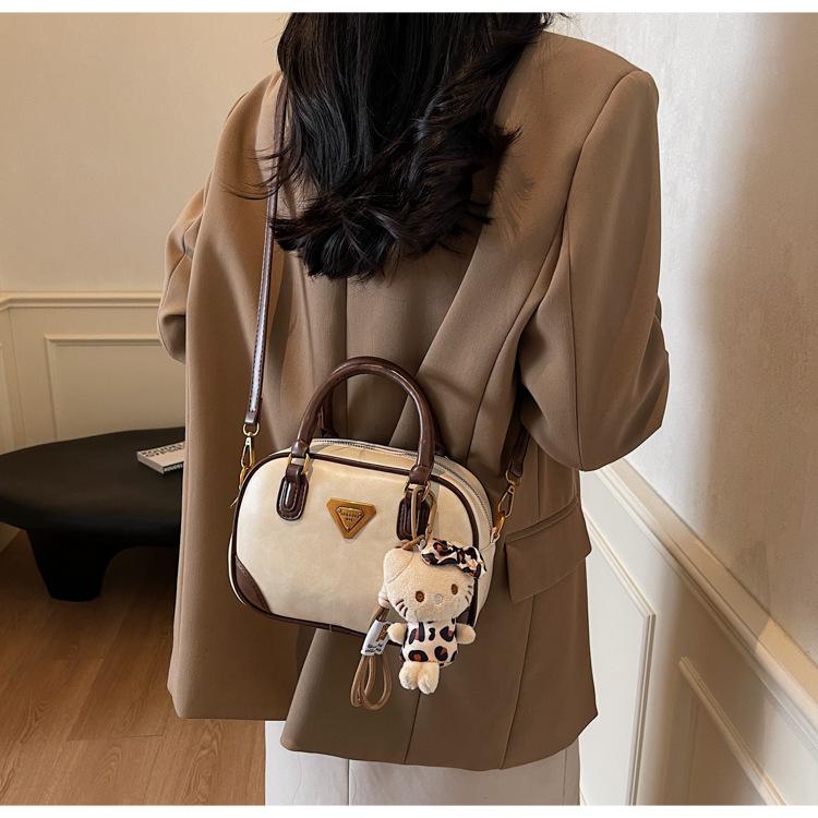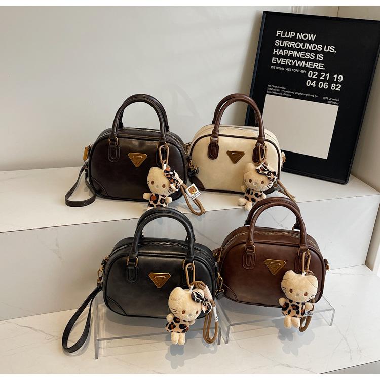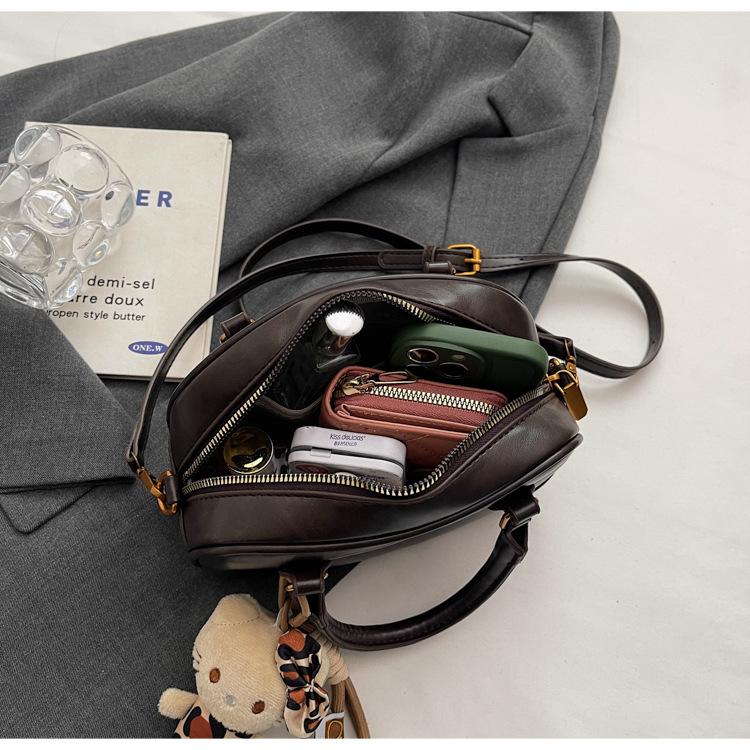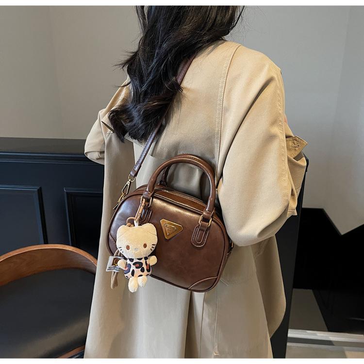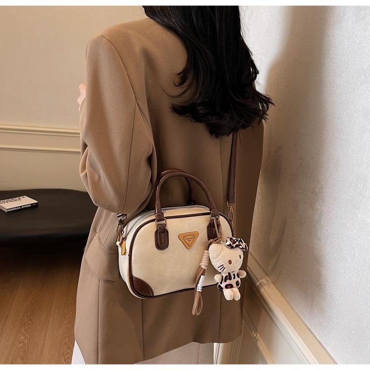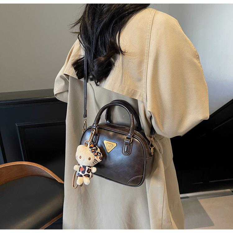 Bolso Satchel de Diseño Retro Bolso Boston 2025 Nuevo Diseño Nicho Bolso Cruzado para Viajero Bolso de Hombro con Textura Escarchada