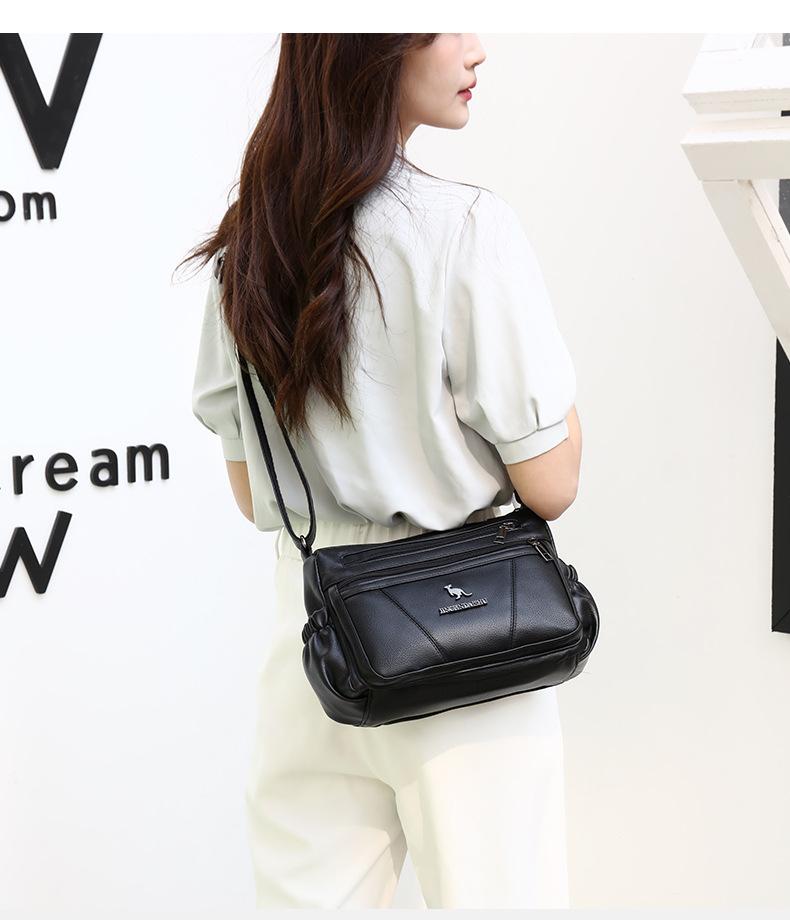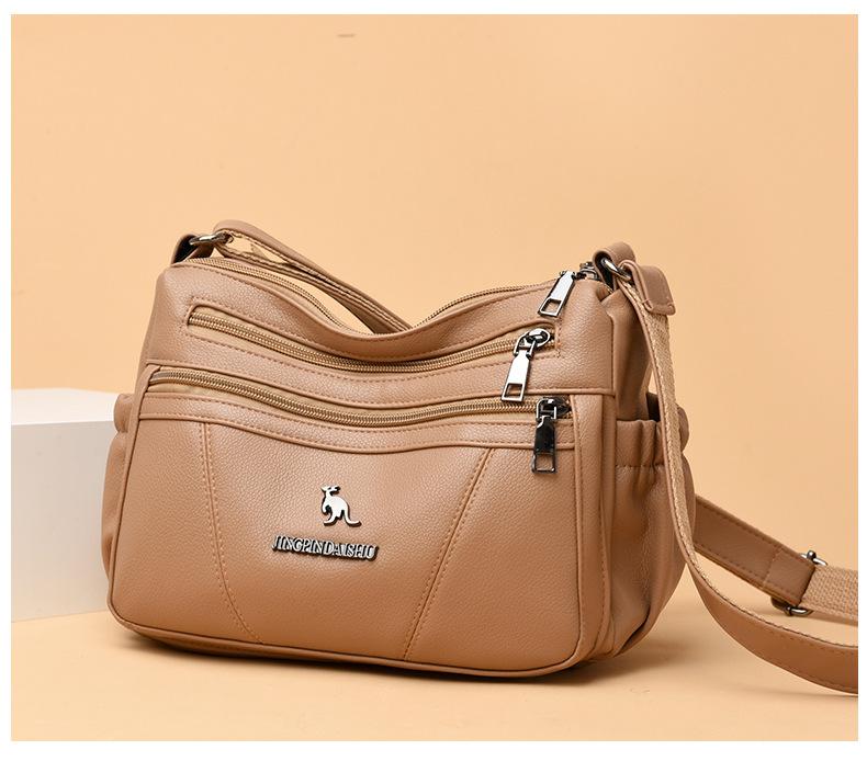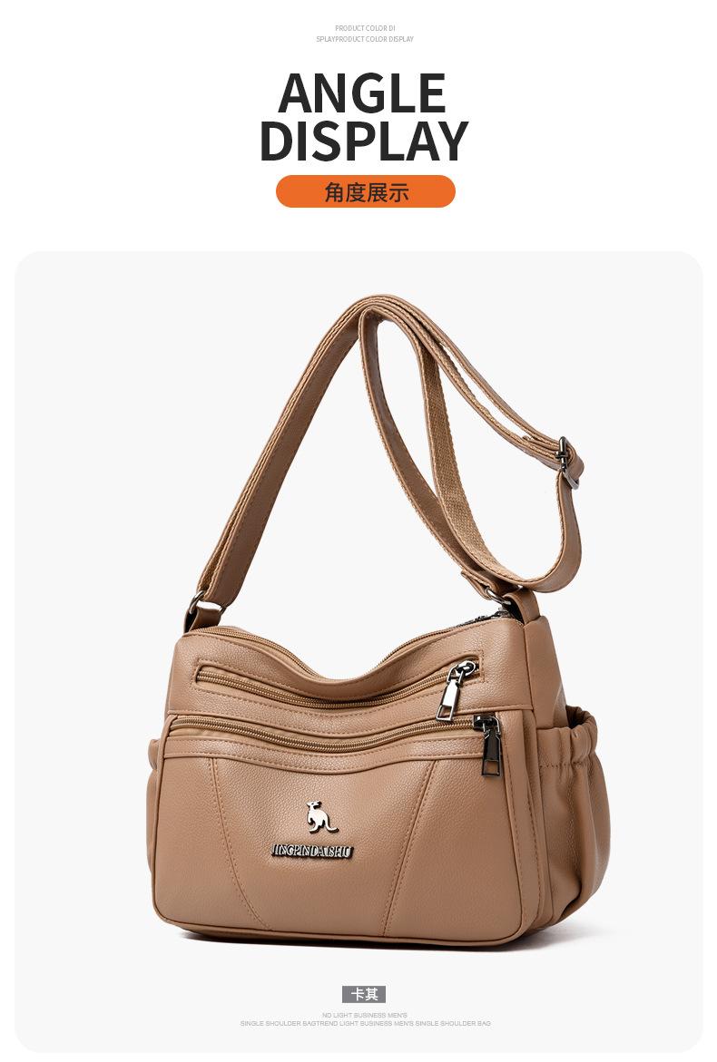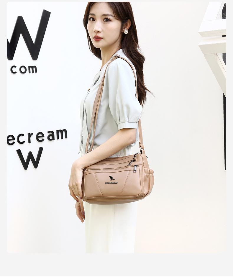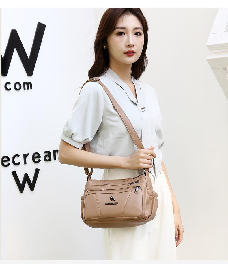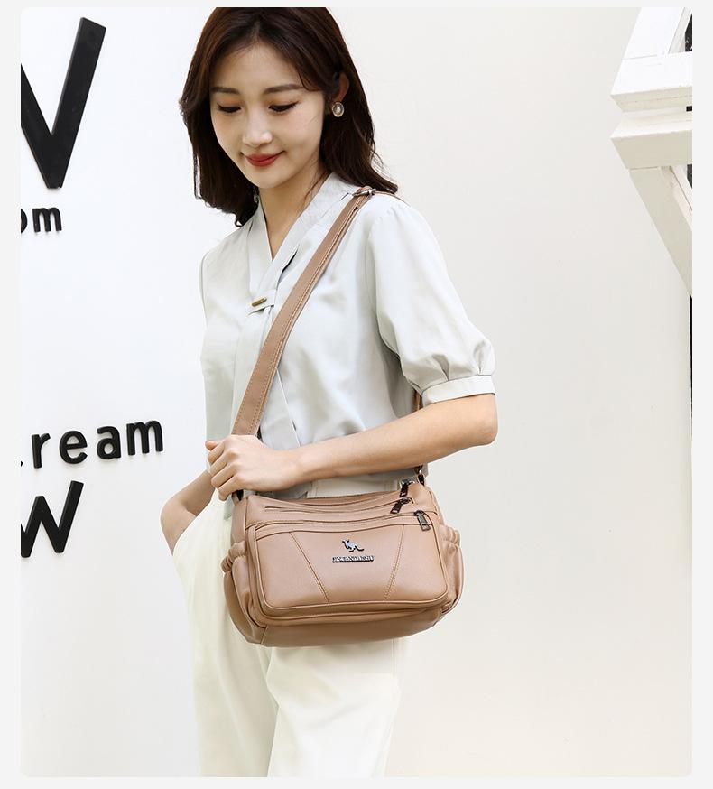 Bolso de piel suave para mujer, sencillo y combinable, primavera 2025, nuevo bolso para madres de mediana edad, bandolera de hombro multicapa de gran capacidad para mujer.