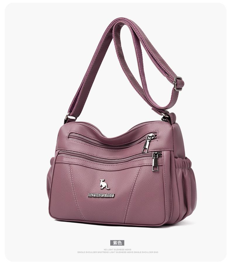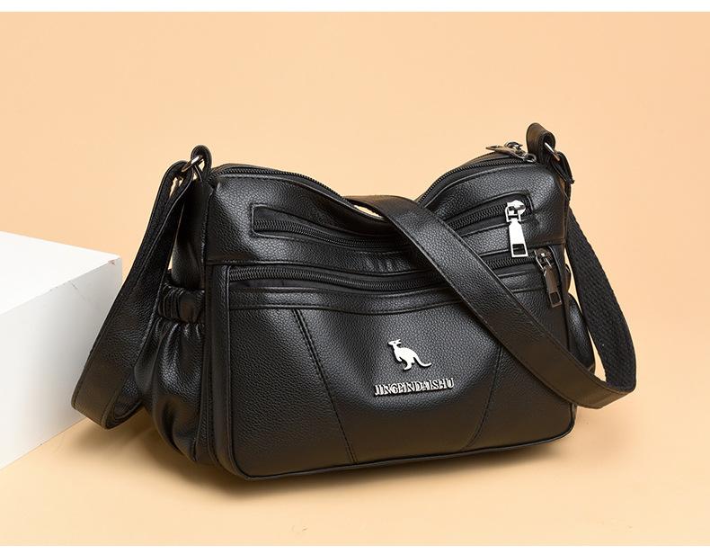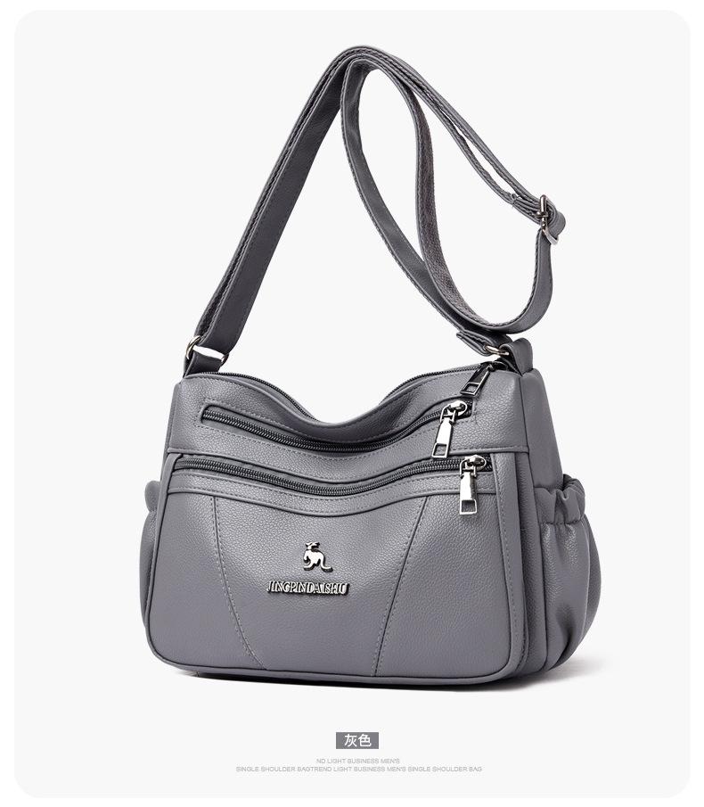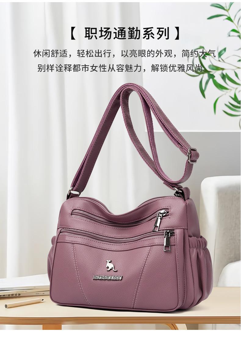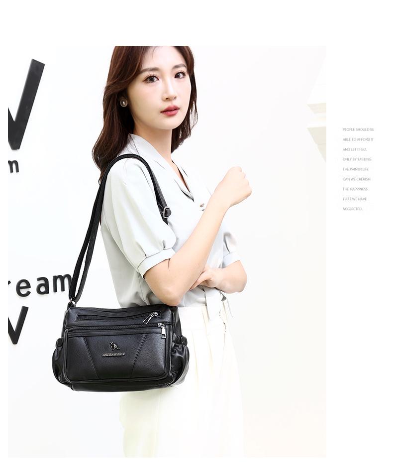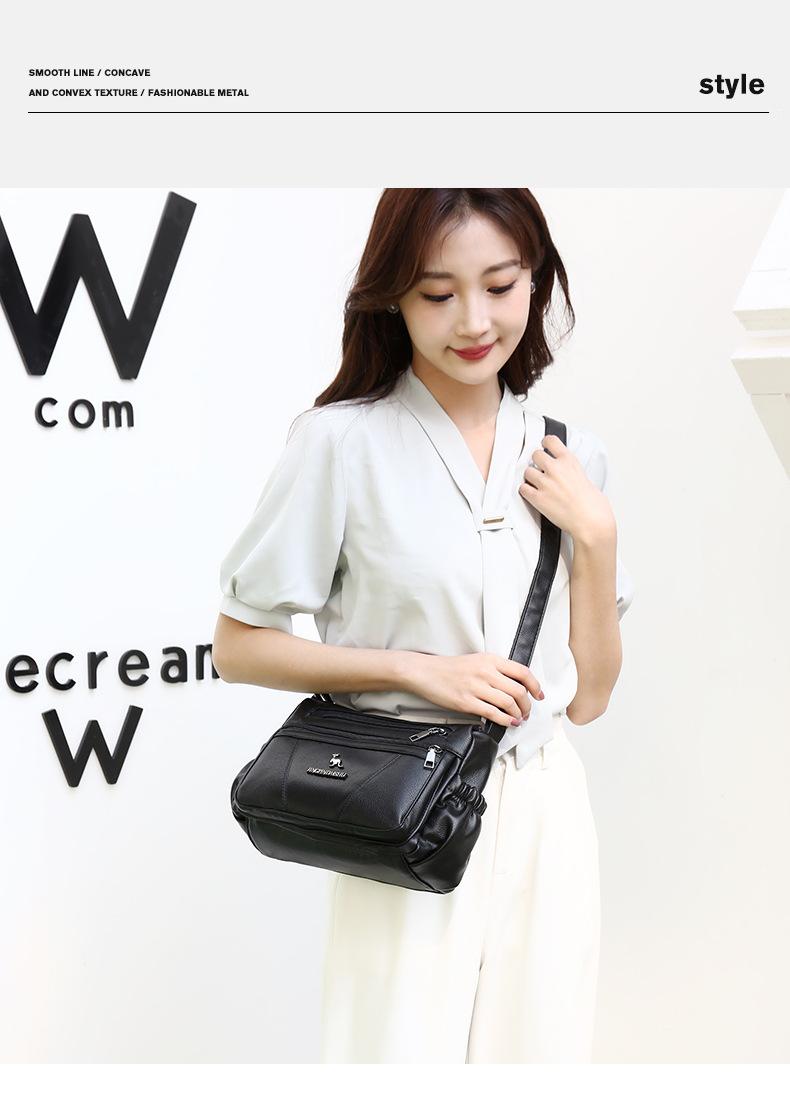 Bolso de piel suave para mujer, sencillo y combinable, primavera 2025, nuevo bolso para madres de mediana edad, bandolera de hombro multicapa de gran capacidad para mujer.