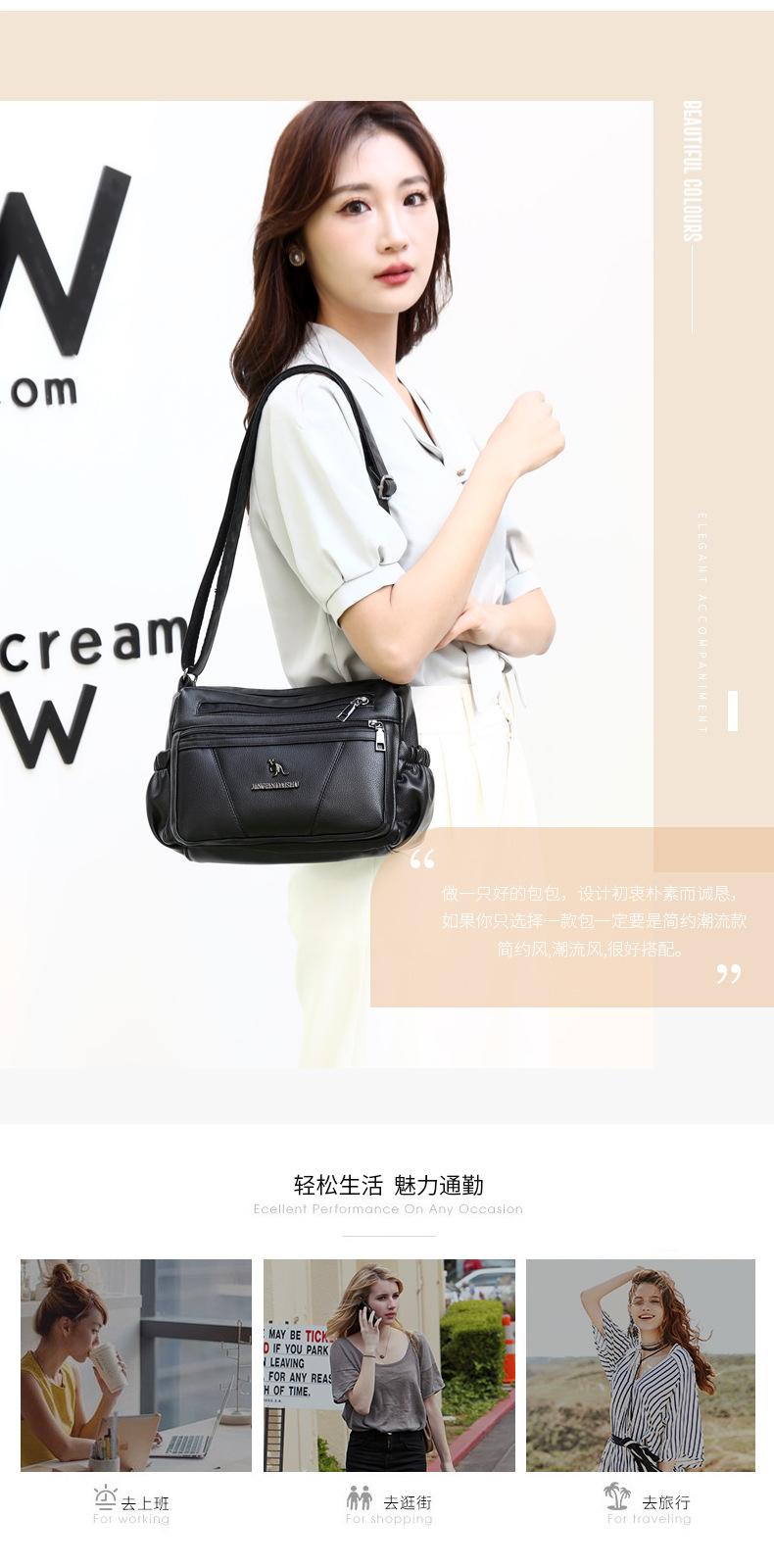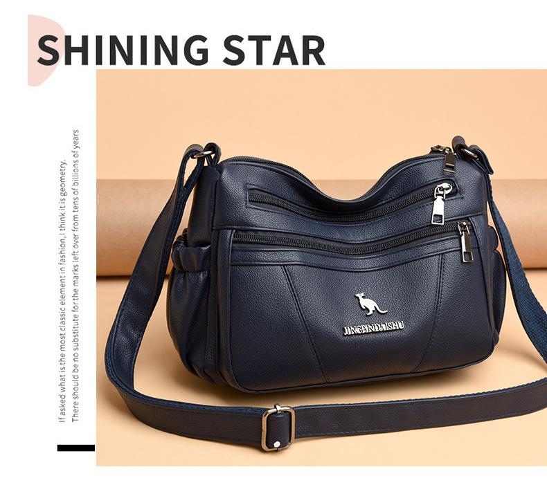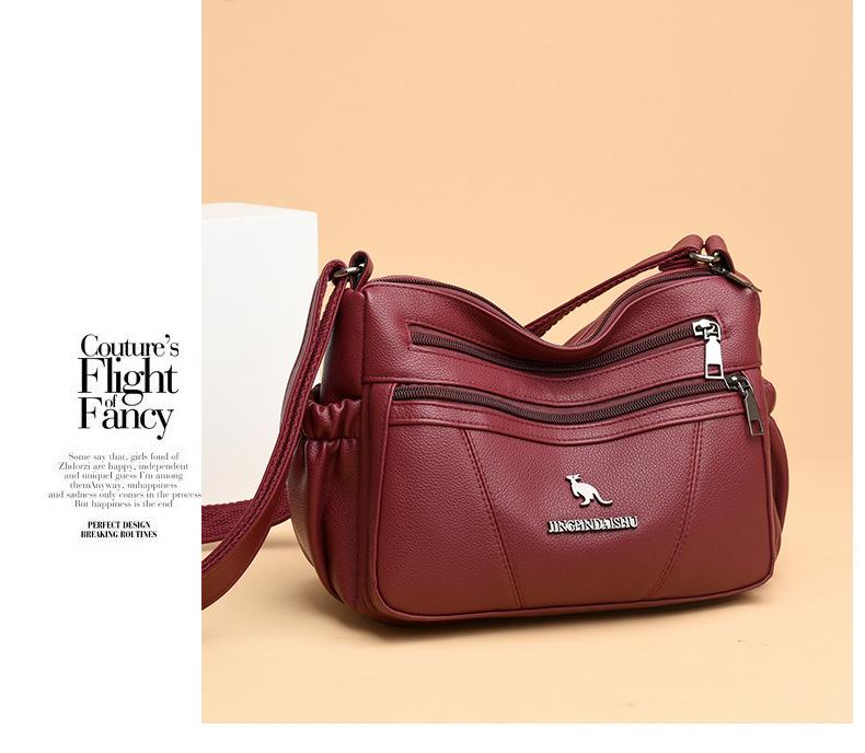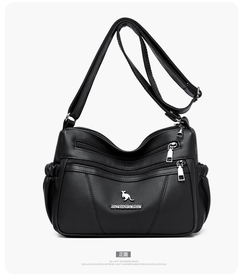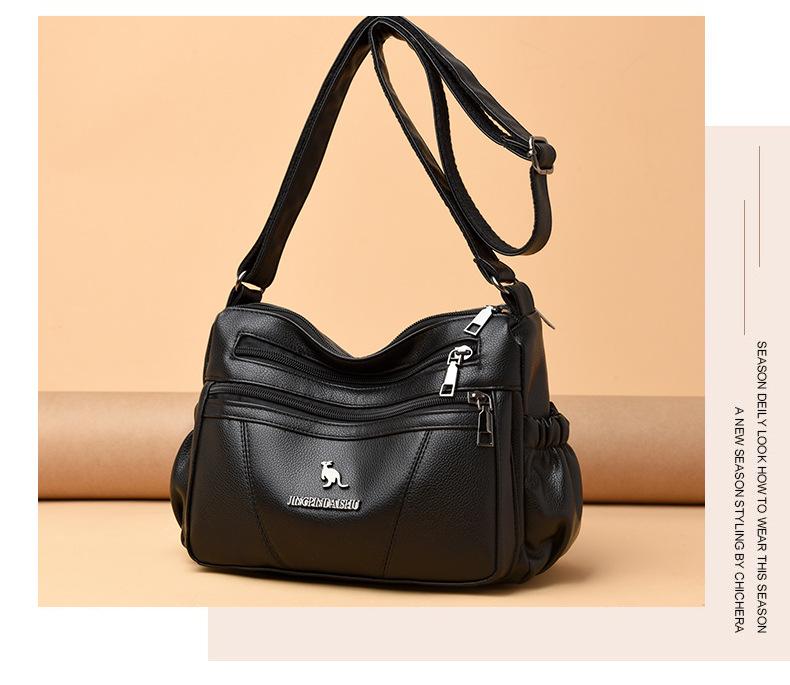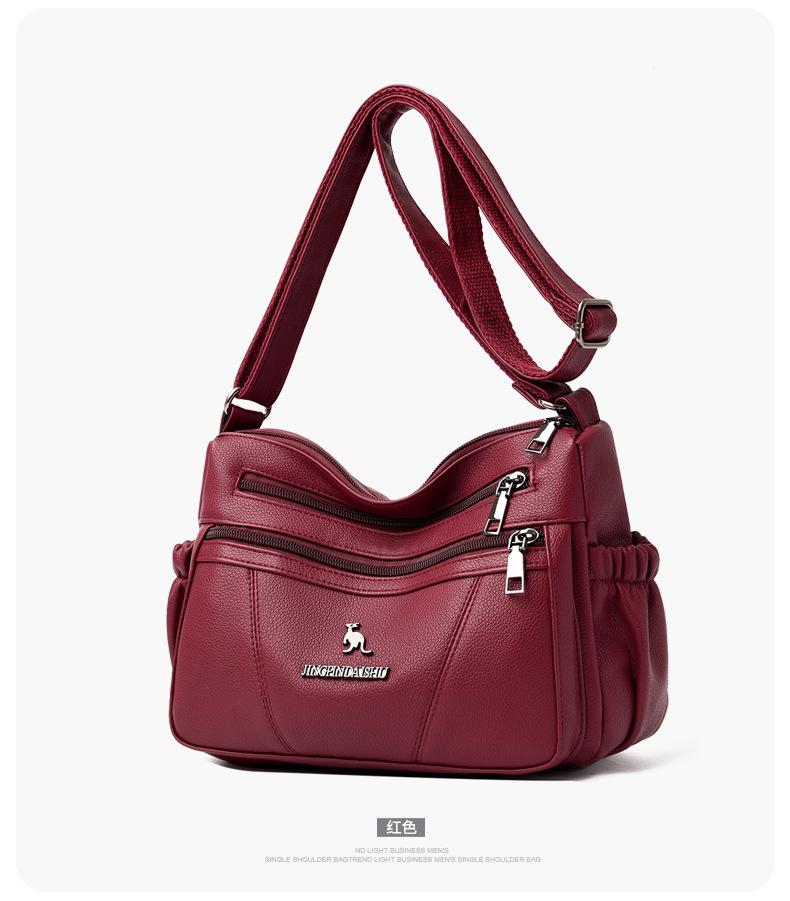 Bolso de piel suave para mujer, sencillo y combinable, primavera 2025, nuevo bolso para madres de mediana edad, bandolera de hombro multicapa de gran capacidad para mujer.